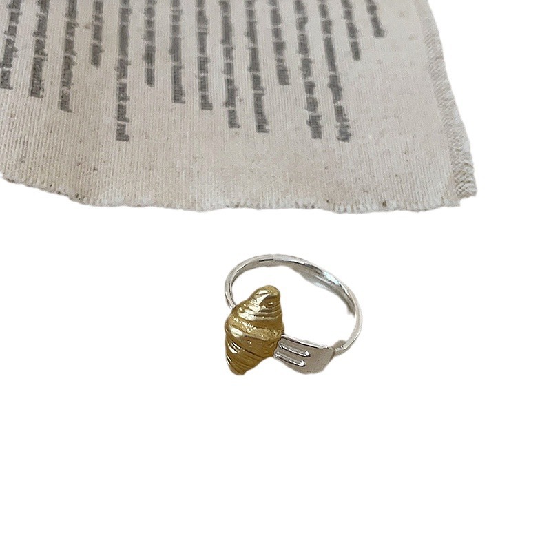 Design Sense Gold and Silver Contrast Color Bread Fork Opening Ring Female Niche Unique Personality Fashion All-match Ring Ring Ring