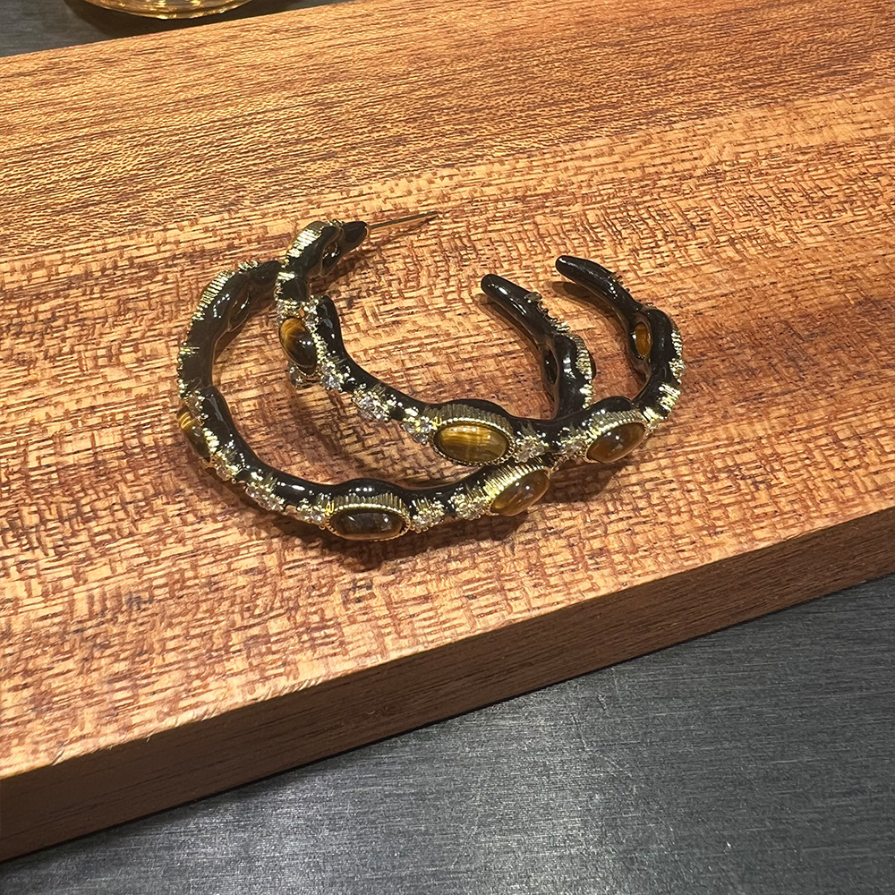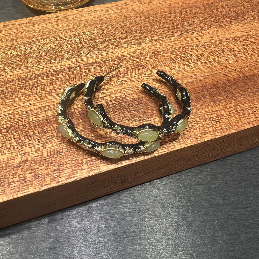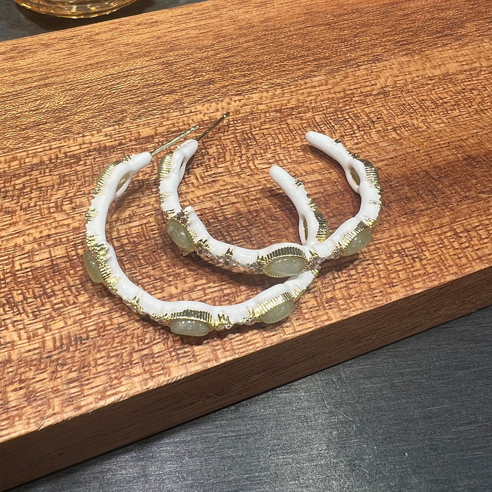Minimalist High-end Ear Ring Amazon Explosive Natural Stone Turquoise Chalcedony Enamel Color Exquisite Light Luxury Earrings Batch
