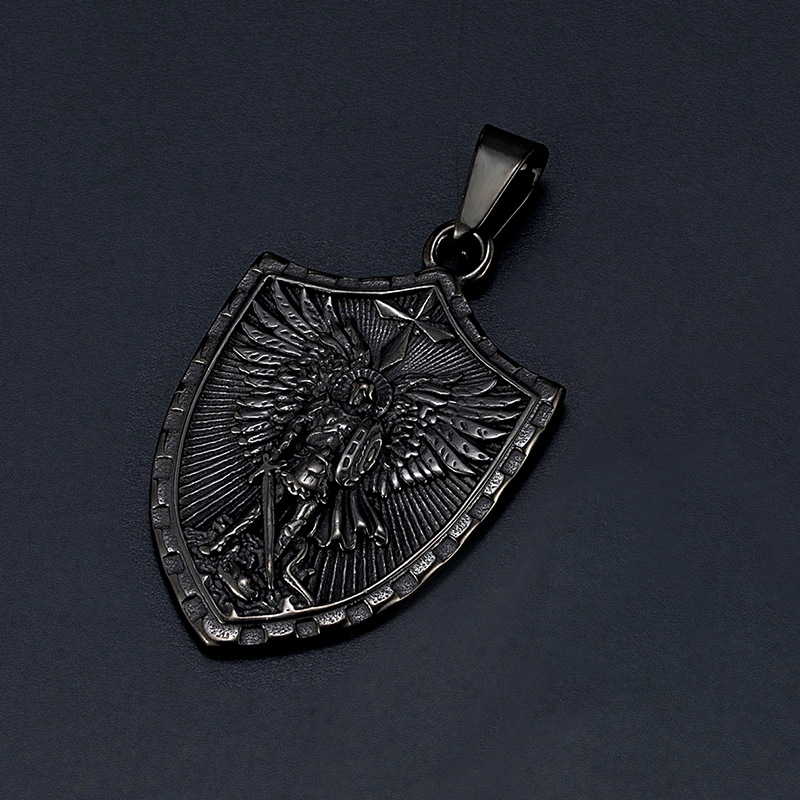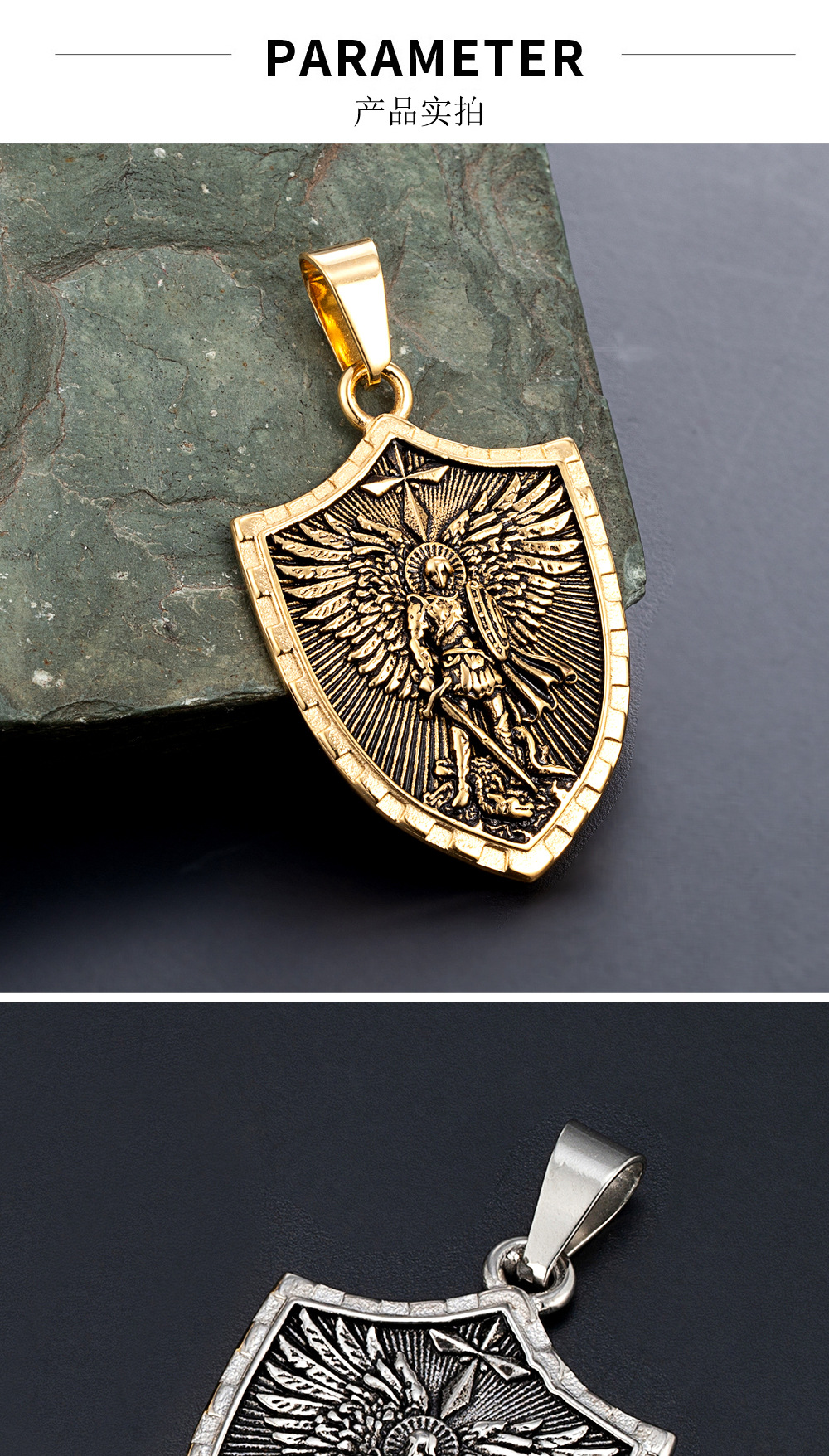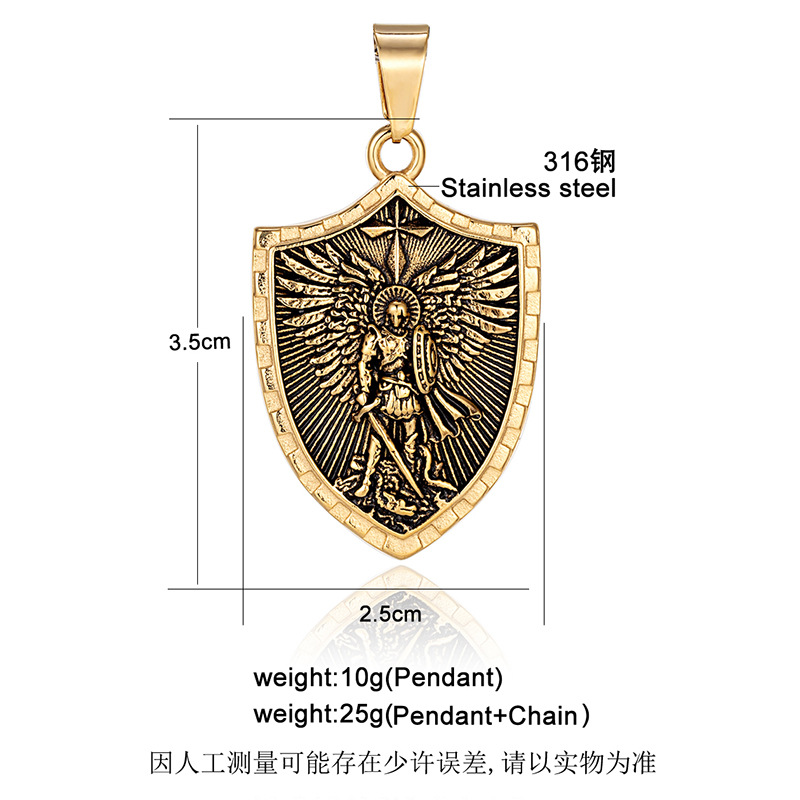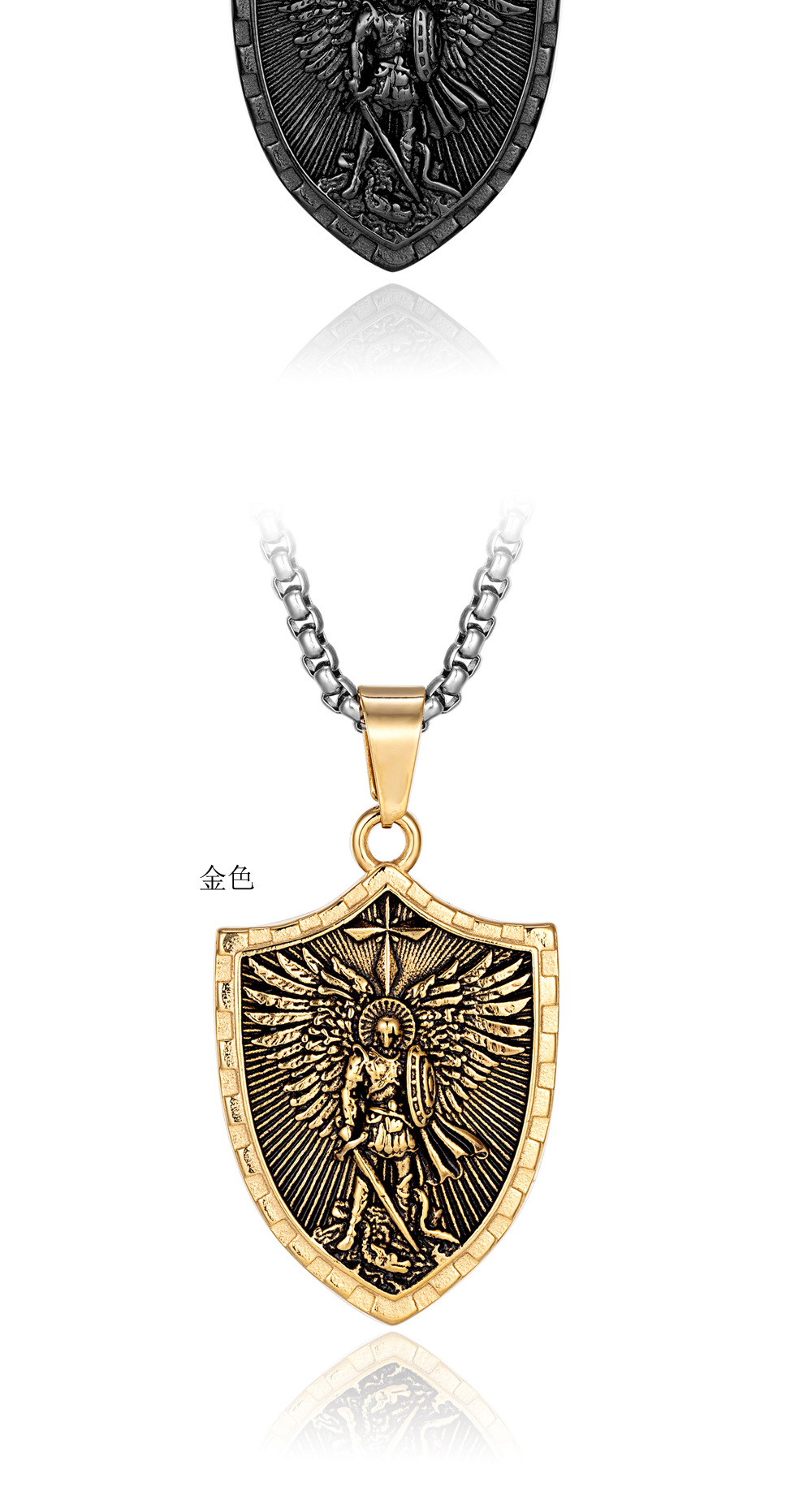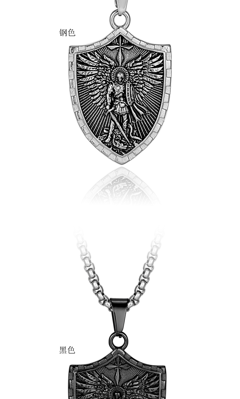 European and American Stainless Steel Warrior Jewelry Michael Angel Pendant Titanium Steel Sword-Wielding Warrior Shield Men's Necklace