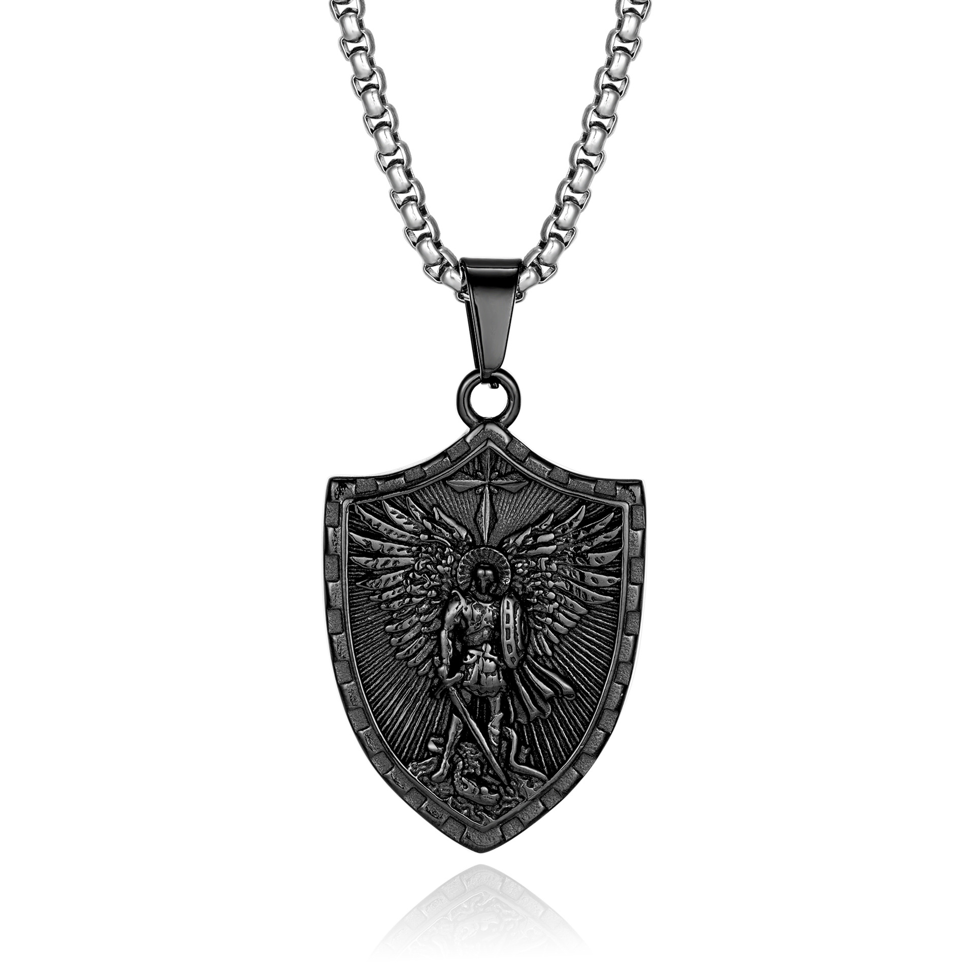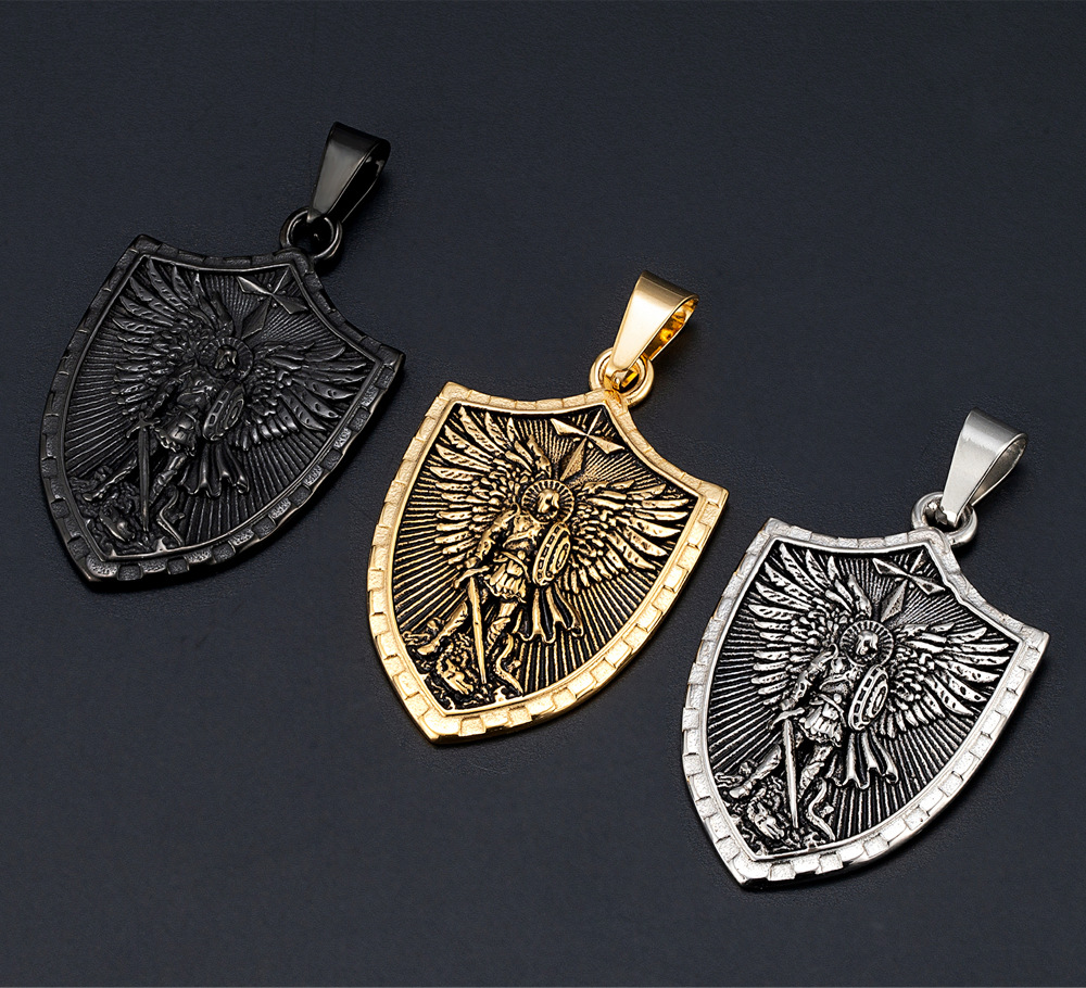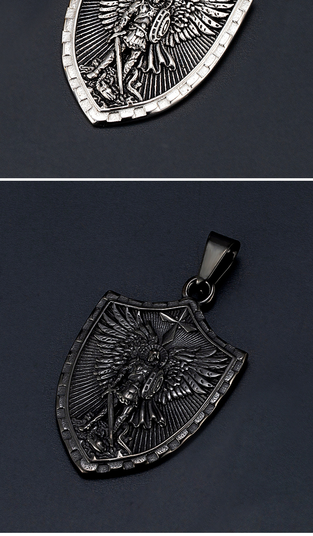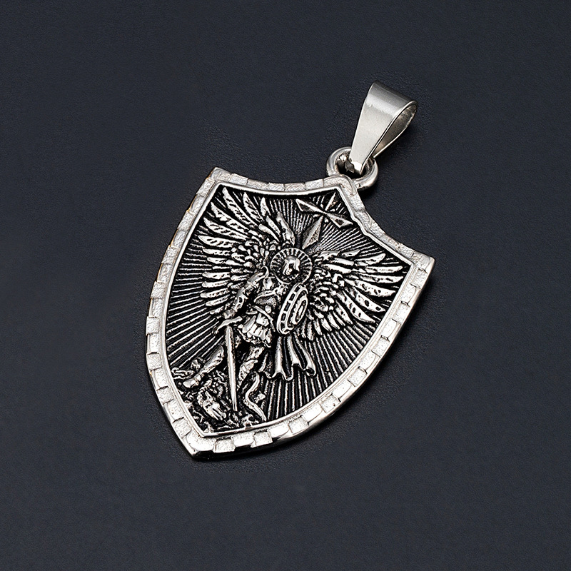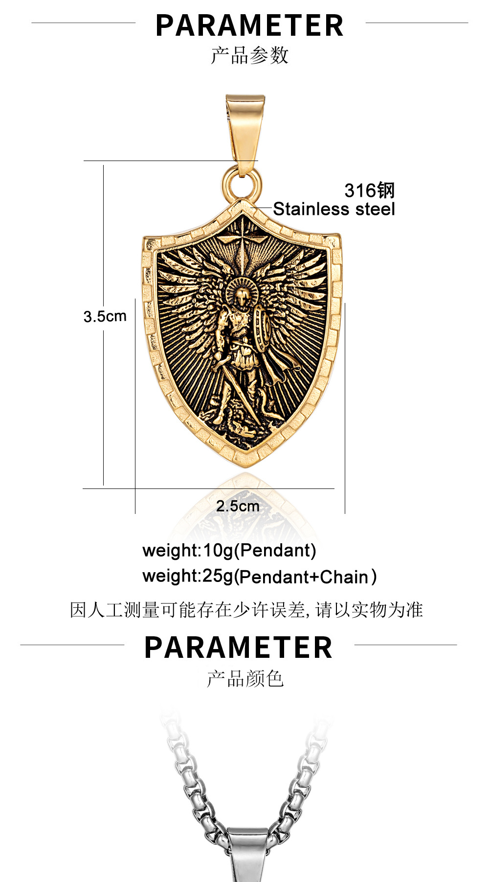 European and American Stainless Steel Warrior Jewelry Michael Angel Pendant Titanium Steel Sword-Wielding Warrior Shield Men's Necklace