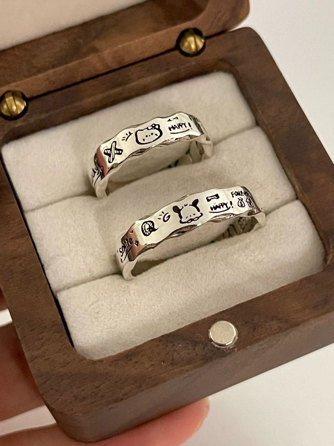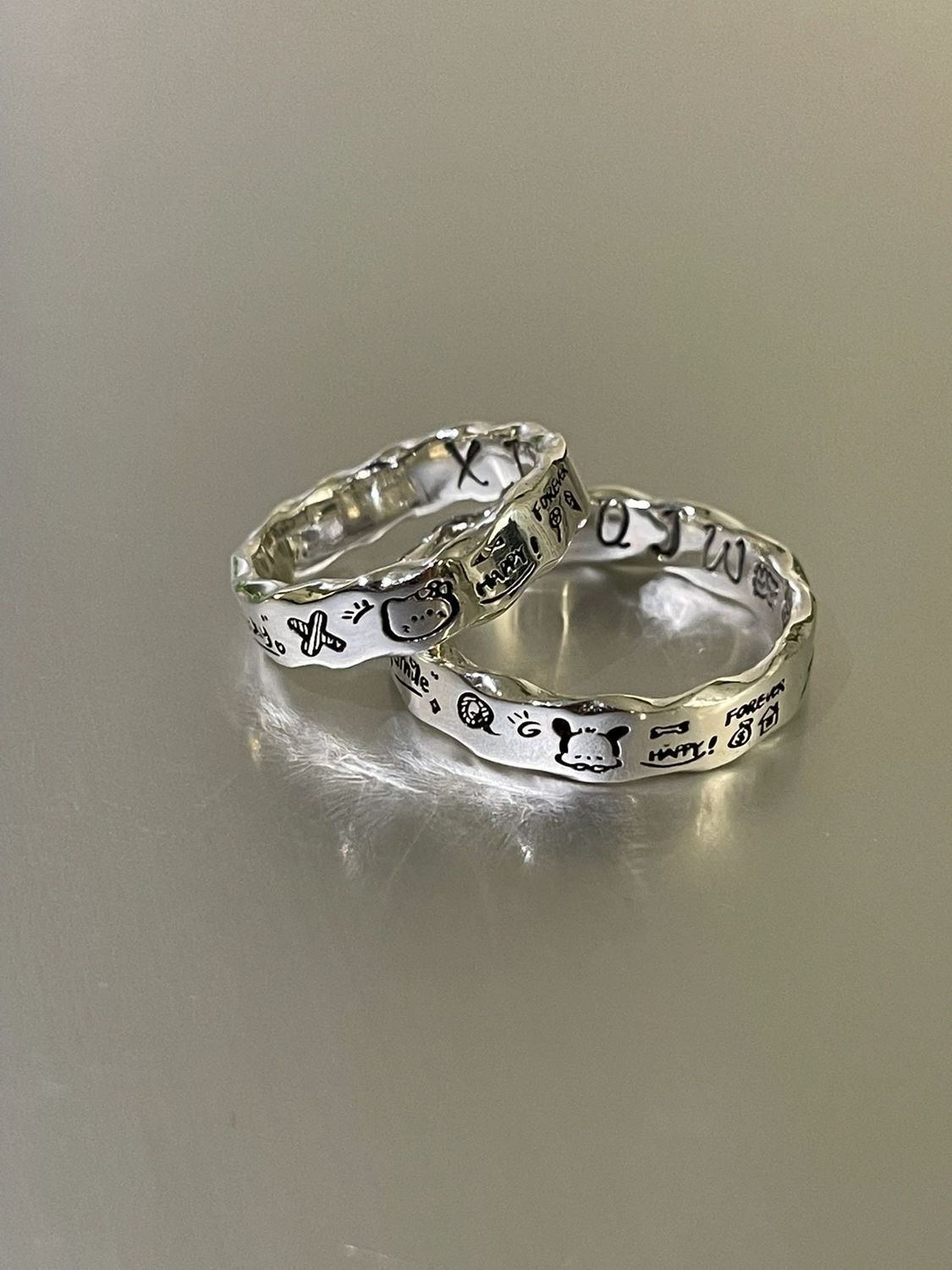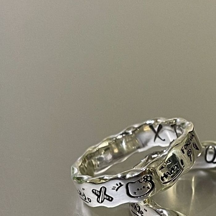 Minimalist Graffiti Wavy Edge Ring for Women ins Niche Design Versatile Exquisite Fashion Pacha Dog Couple Ring