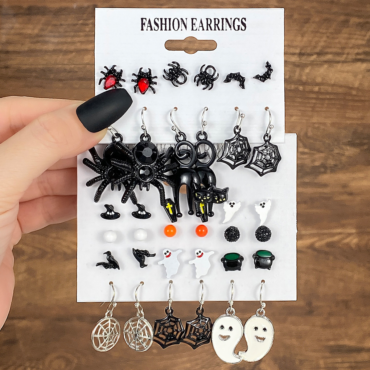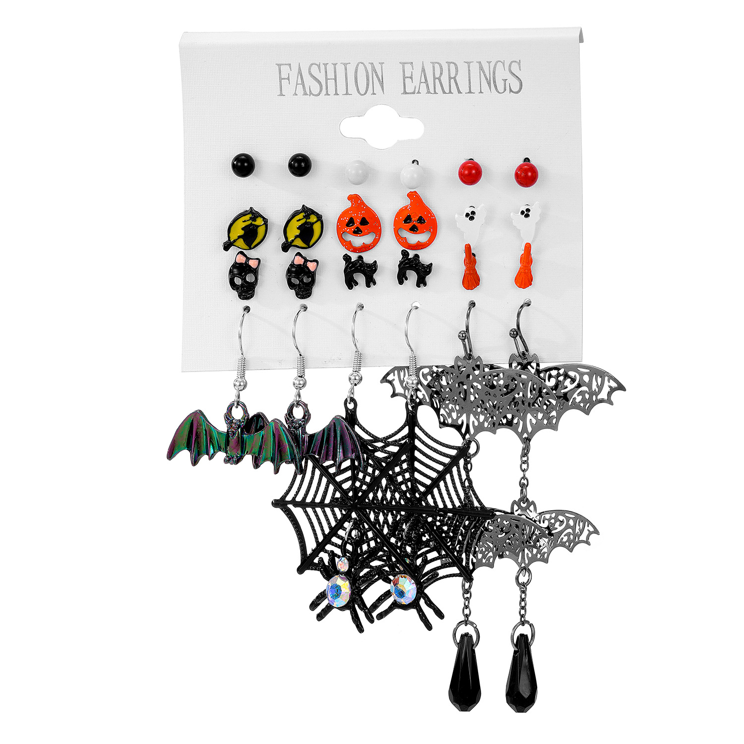 Cross-border explosions Halloween series earrings suit horror funny black cat pumpkin head earrings 9 sets wholesale women