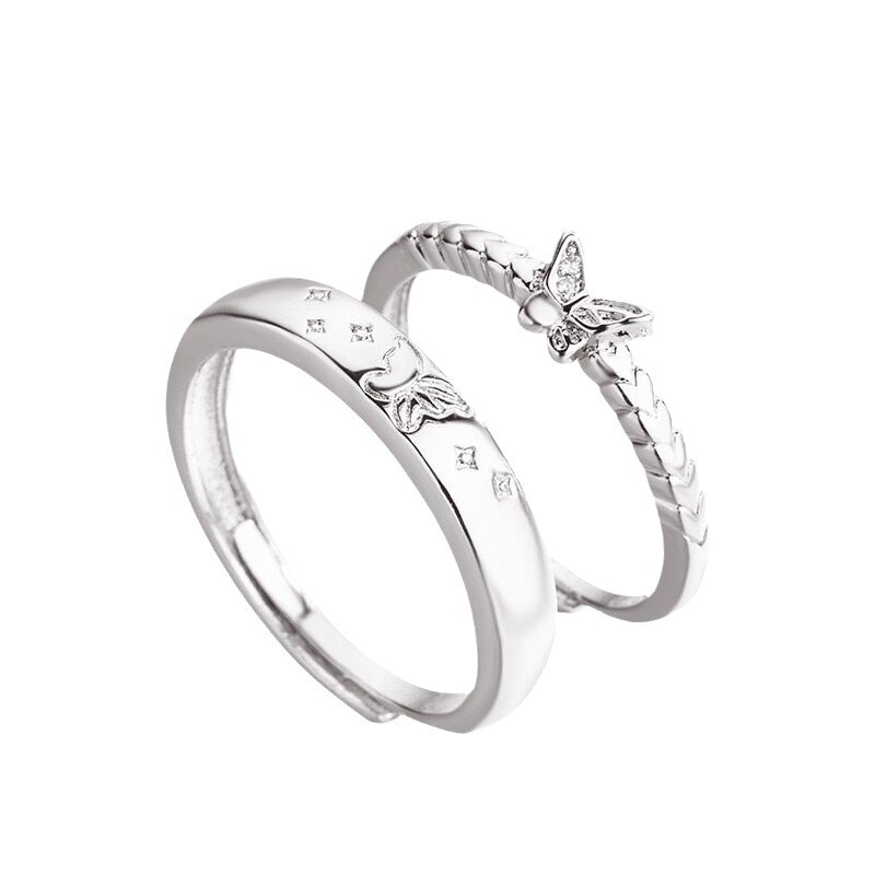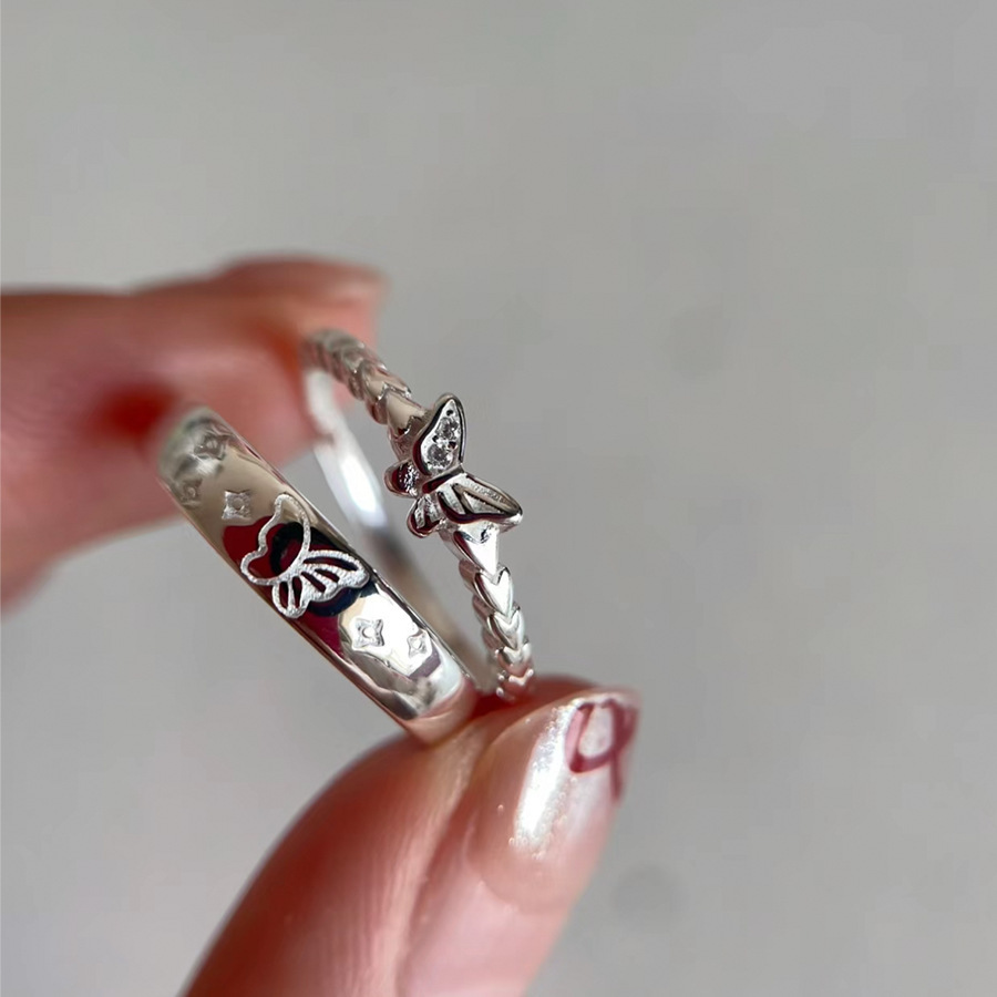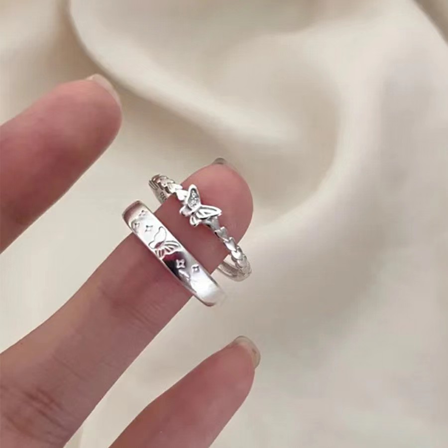 Sweet Cool Style Butterfly Zircon Ring Couple's suit Simple Fashion All-match Bracelet Opening Adjustable Accessories Ring
