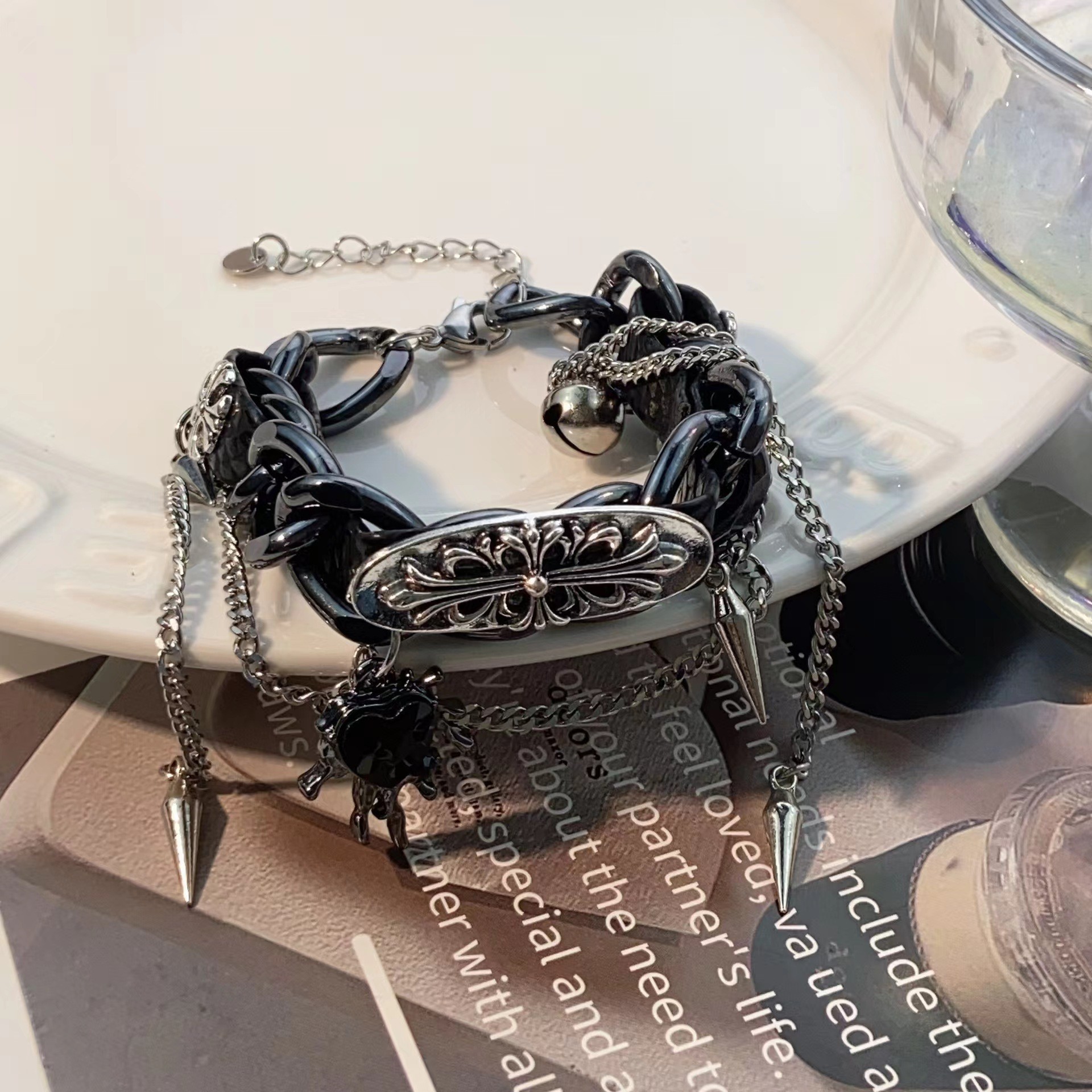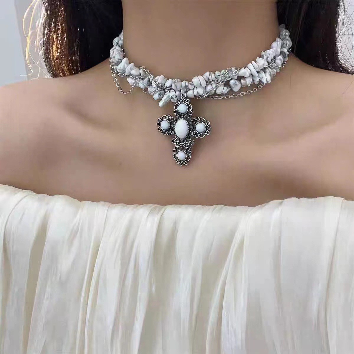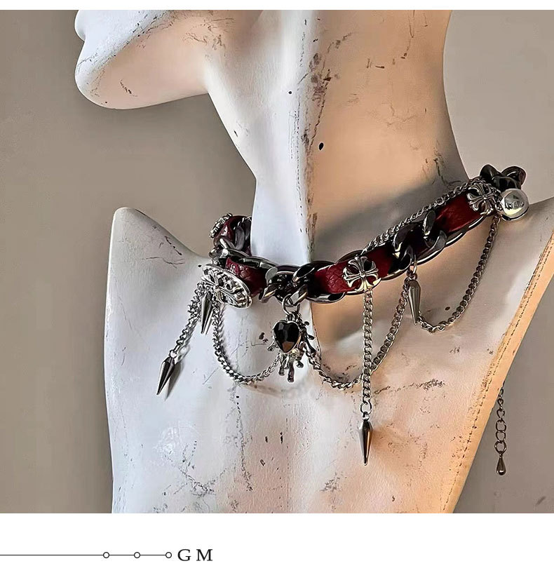 Color: Y2k oil drop rivet skull cross necklace x3743