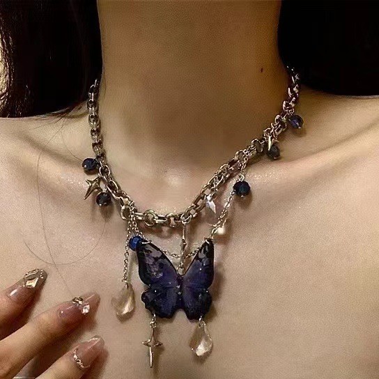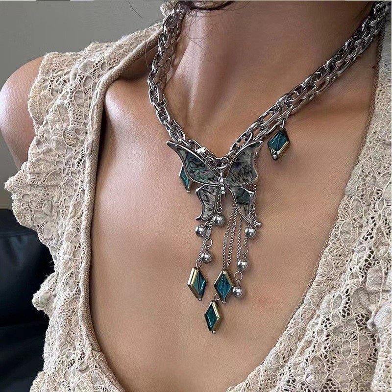 Color: Natural mother-of-pearl butterfly necklace x4030