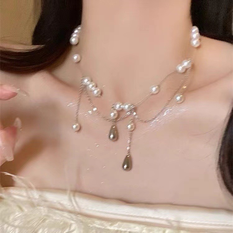 Color: Sweet and cool tassel rivet pearl stitching necklace x4148