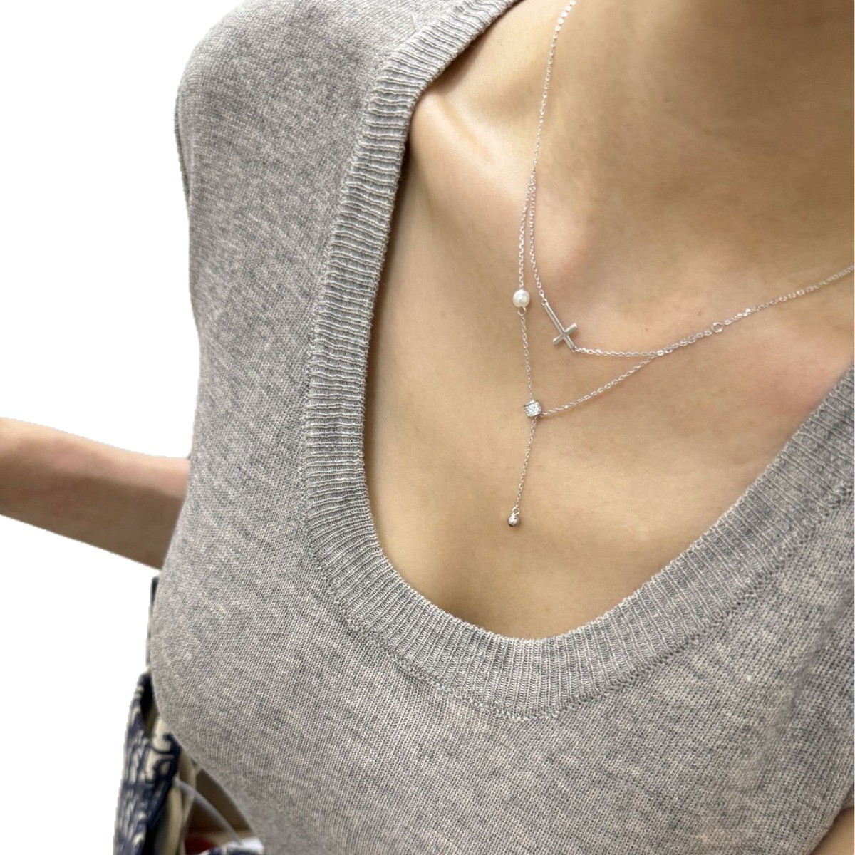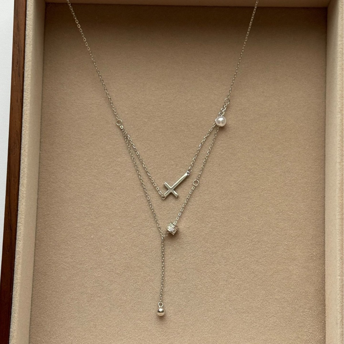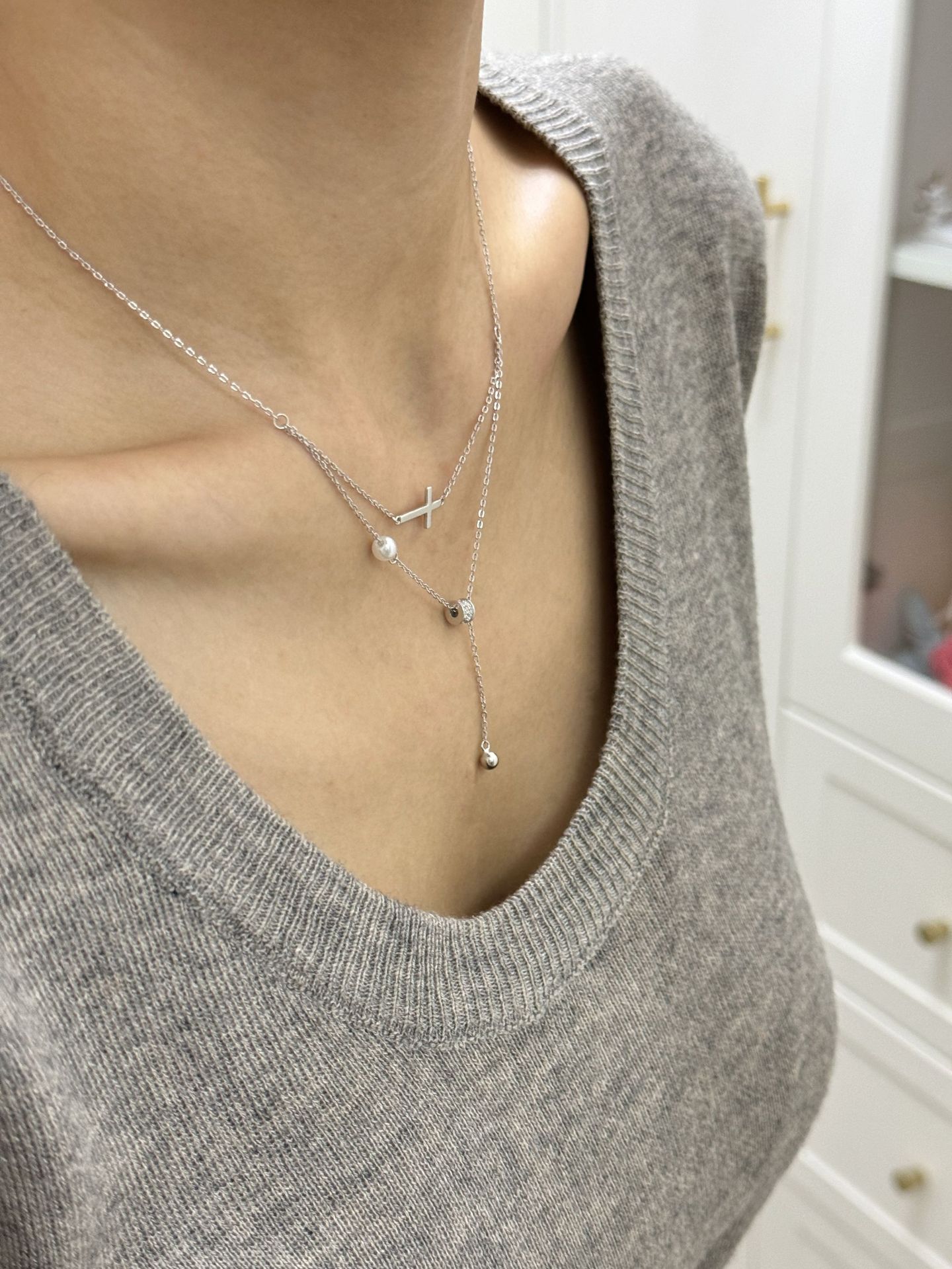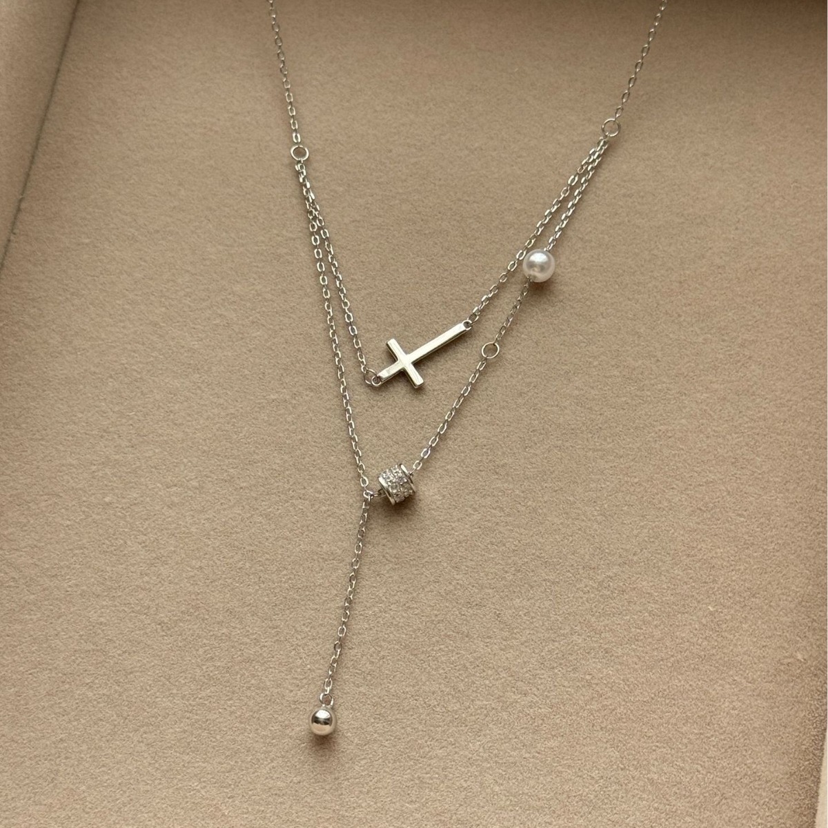 Color: Cross double layer necklace [white gold]