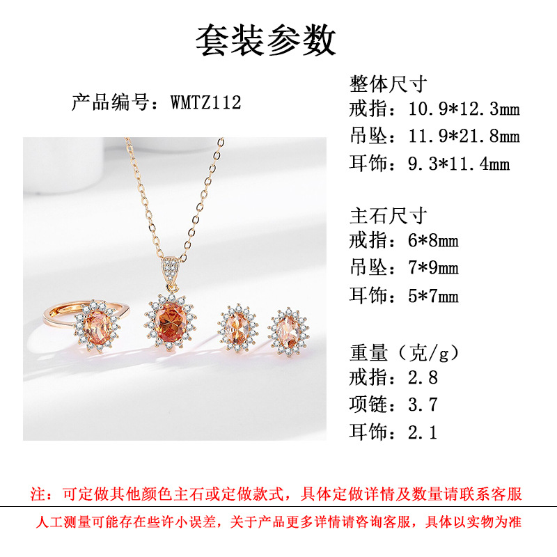 Europe and the United States cross-border live selling fashion champagne gold real gold necklace earrings ring jewelry suit full diamond three-piece set