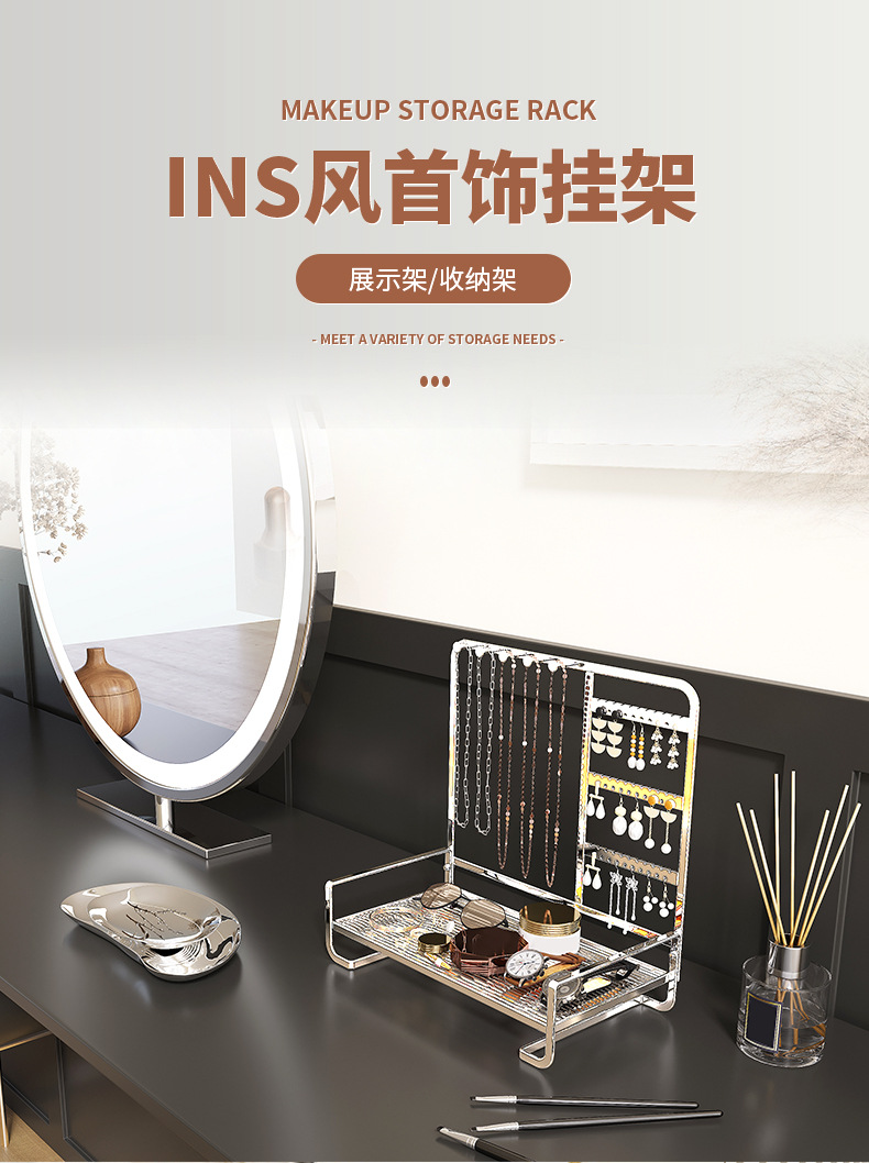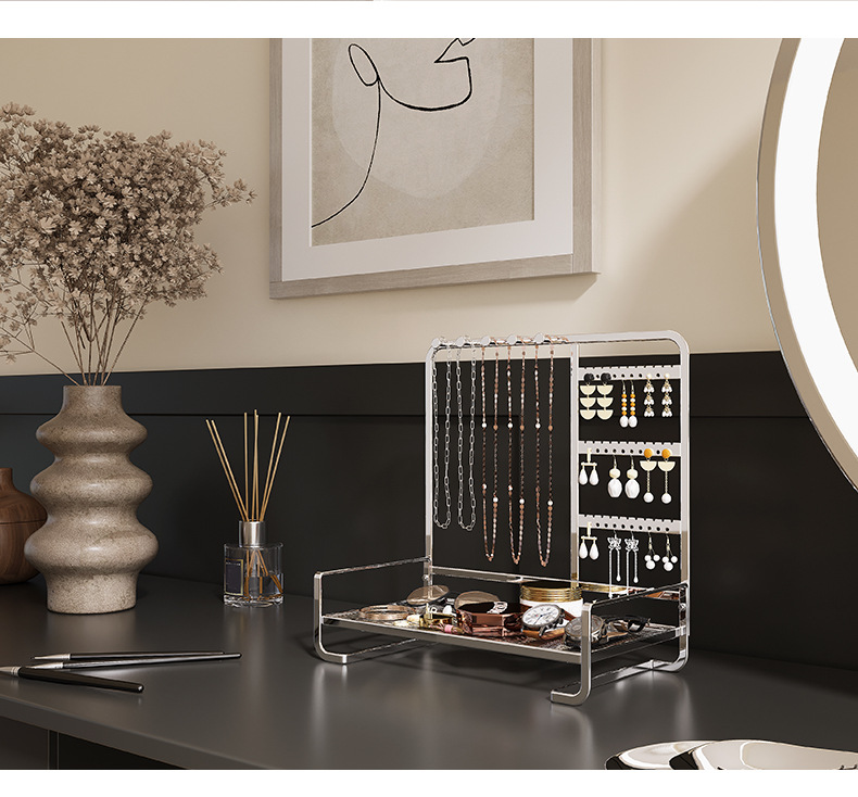 Cross-border jewelry display rack jewelry storage rack necklace bracelet rack iron ring tray earrings hanging rack