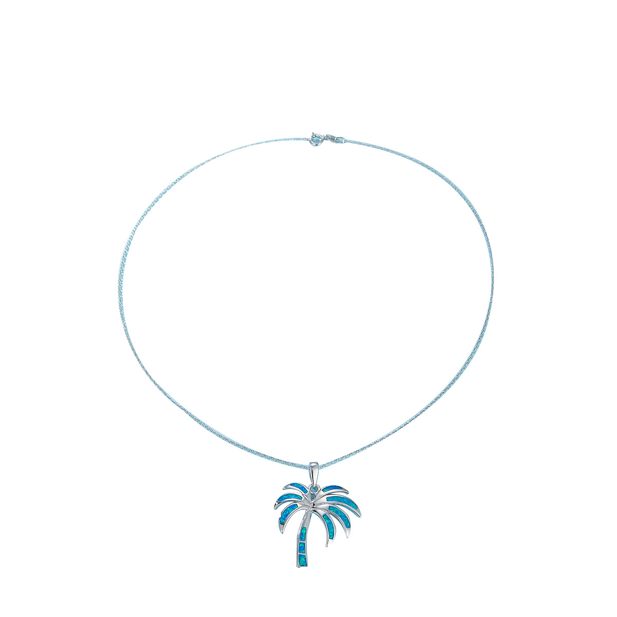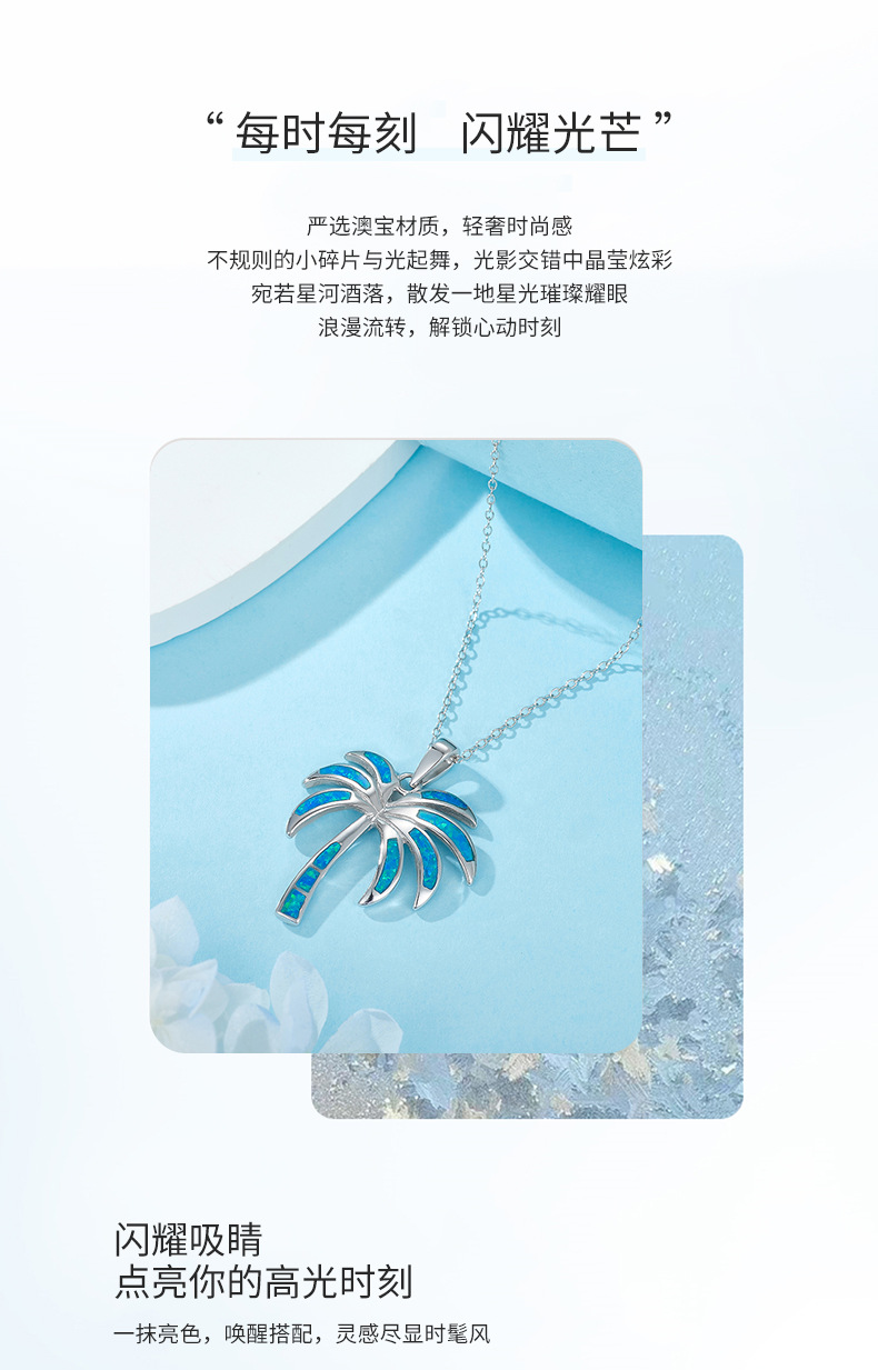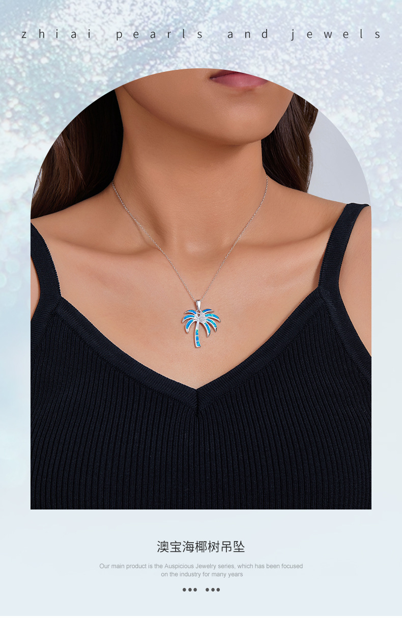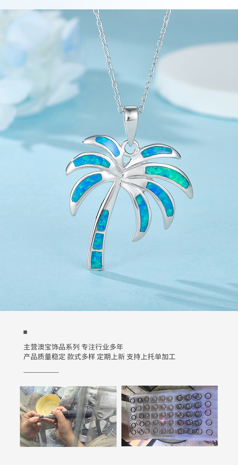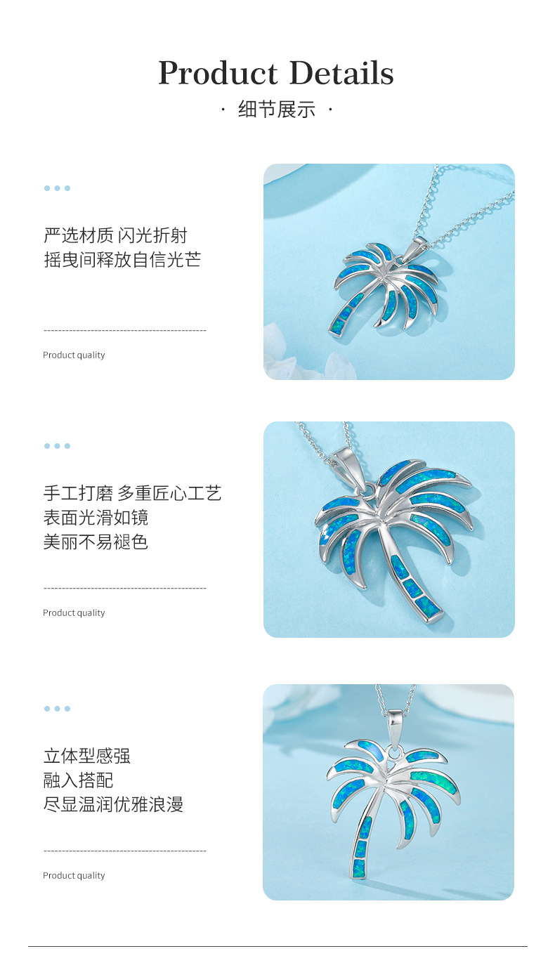European and American Blue Opal Hawaiian Coconut Tree Necklace Copper Silver Opal Inlaid Pendant Tropical Style Women's Necklace Customization