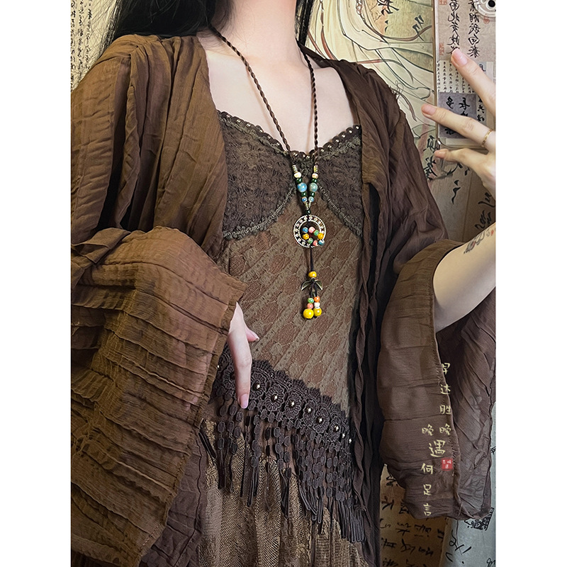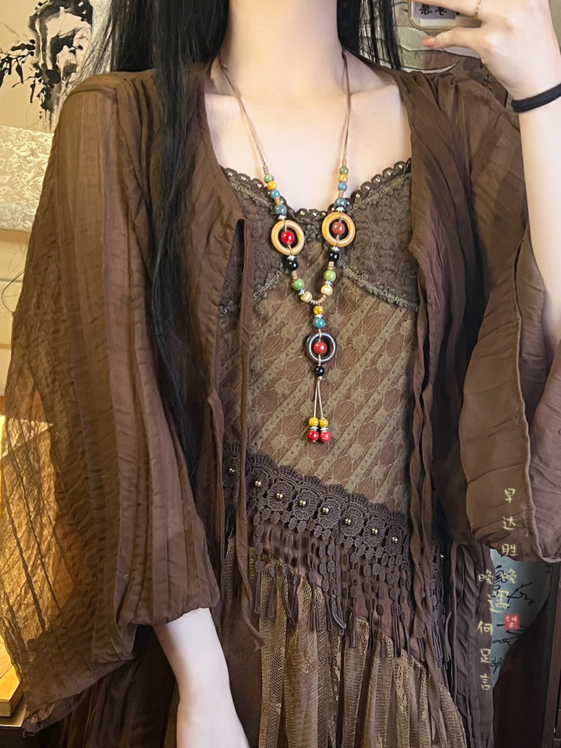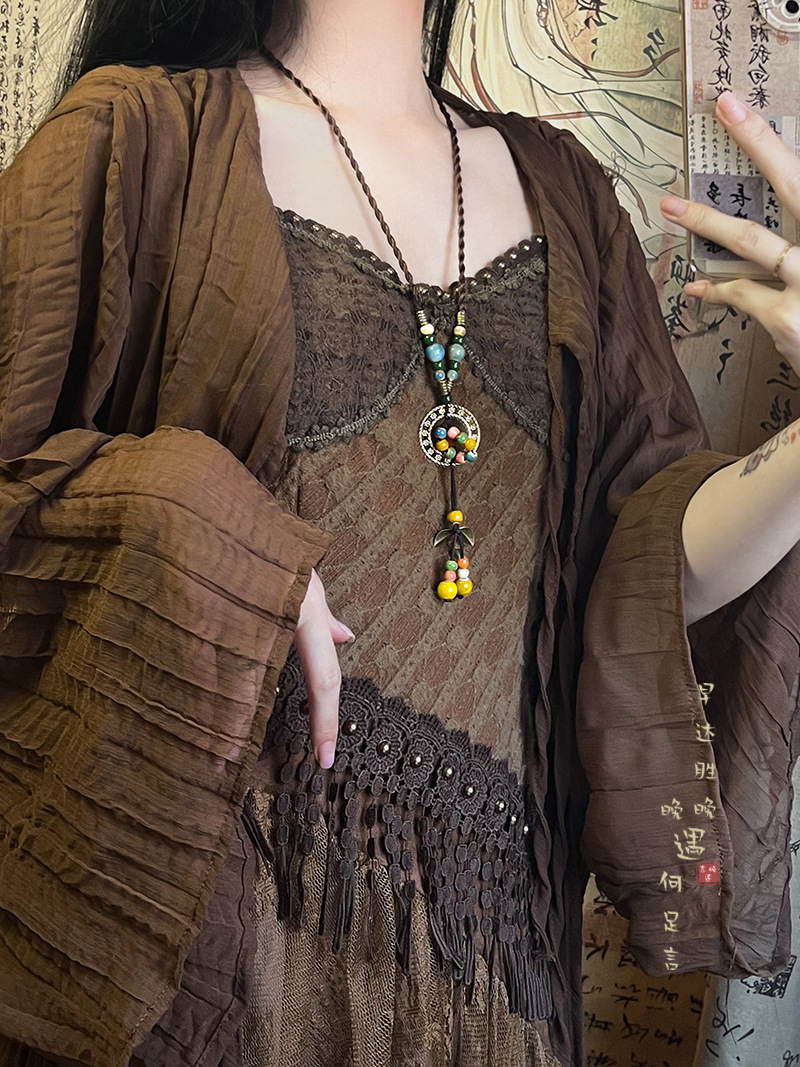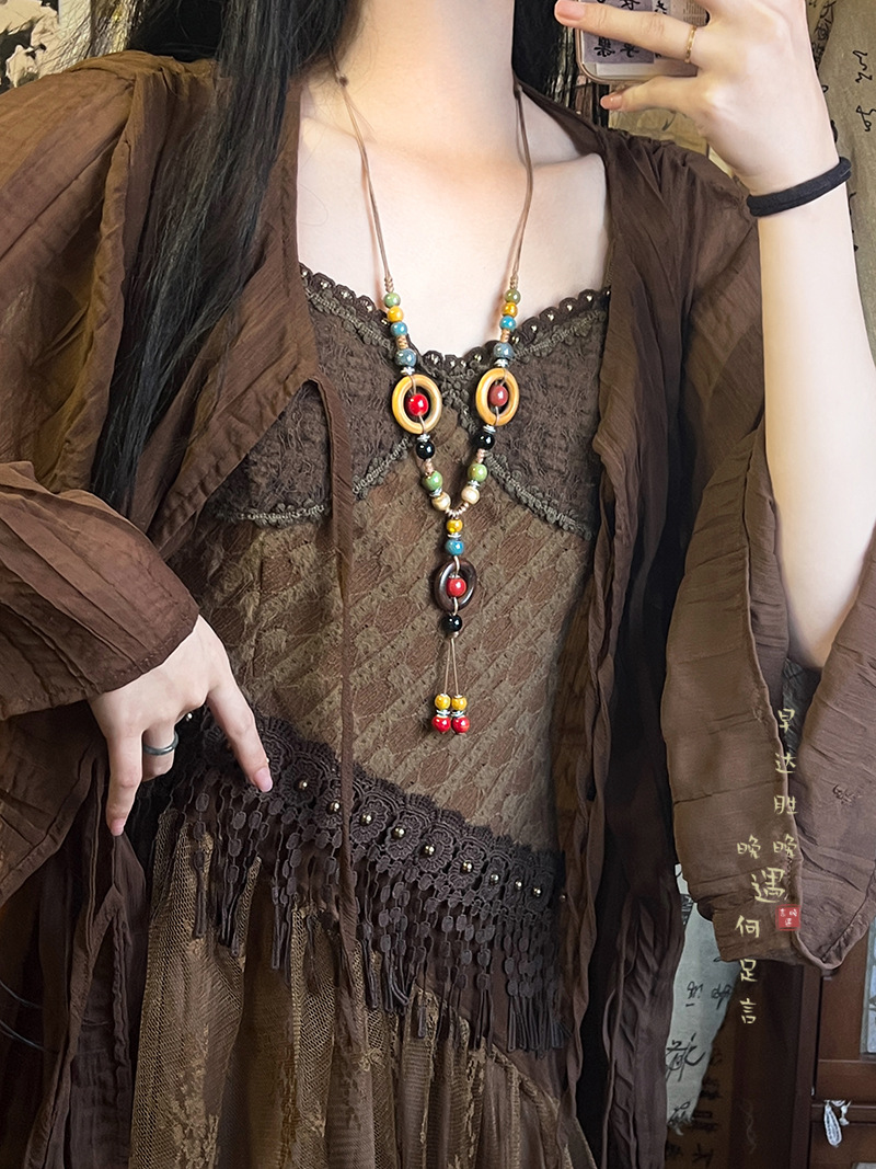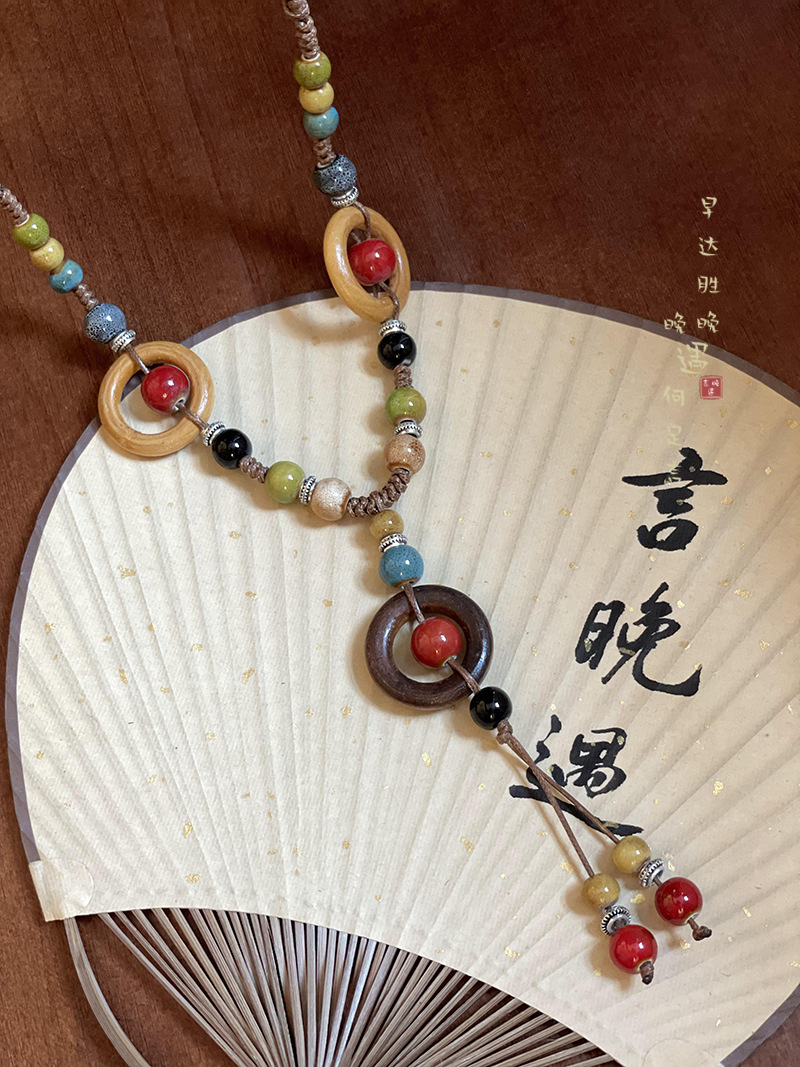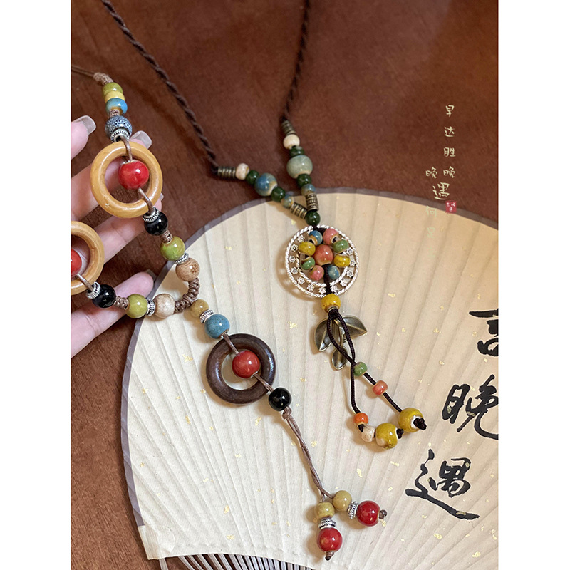 Retro Bohemian Style Ceramic Rope Necklace Women's New Chinese Style Ethnic Style Niche High-end Zen Style Accessories