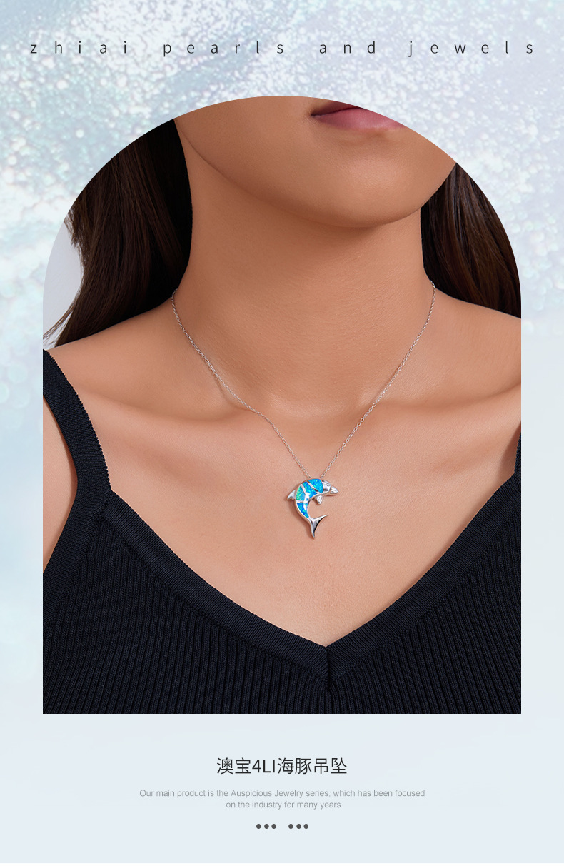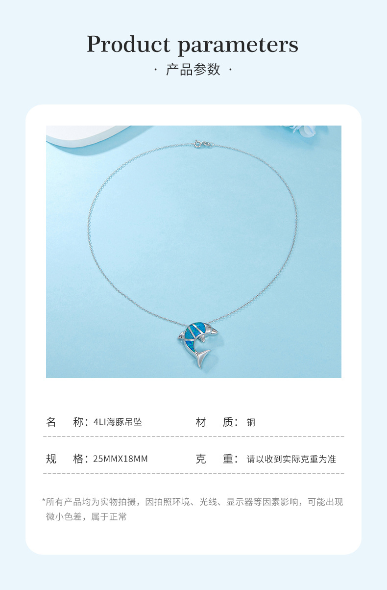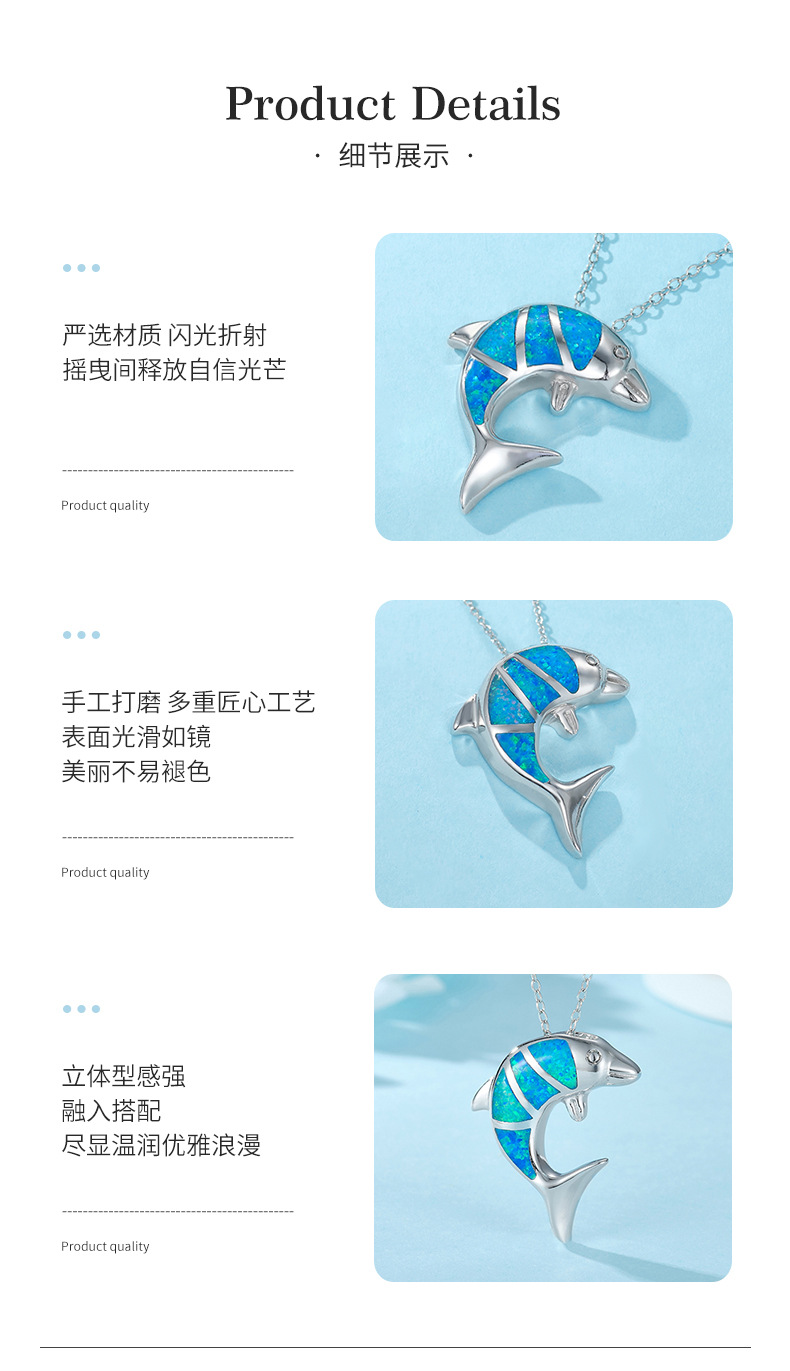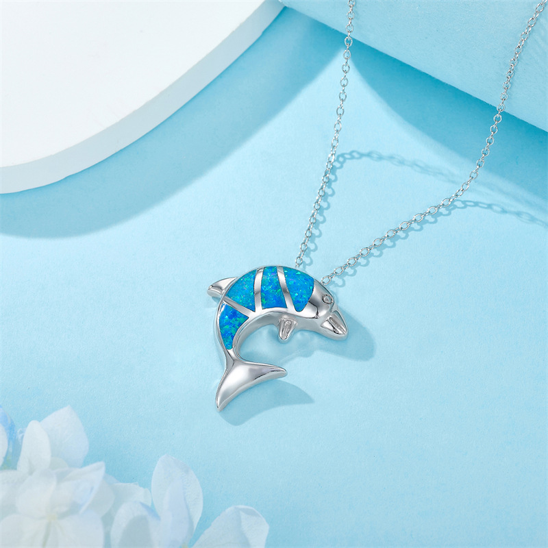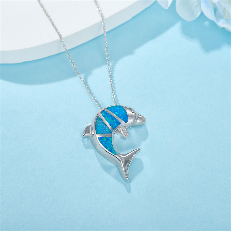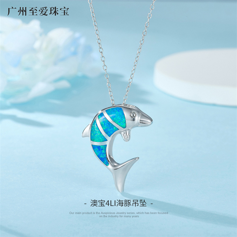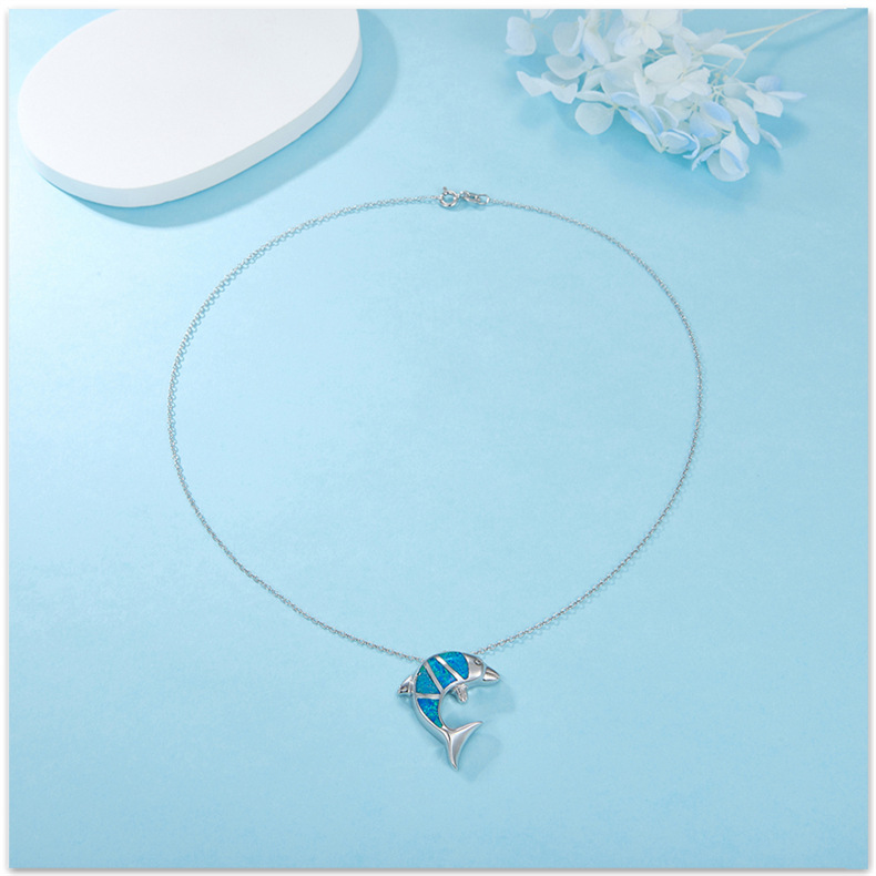 Customized Opal Summer New Hawaiian Ocean Dolphin Niche Design Pendant Necklace Fashion Trendy Accessories