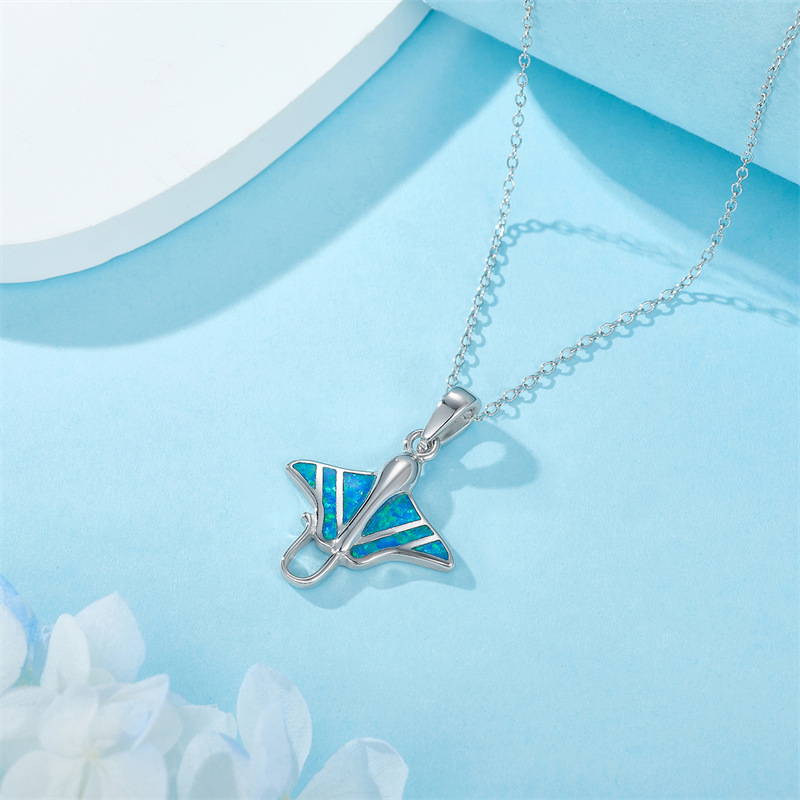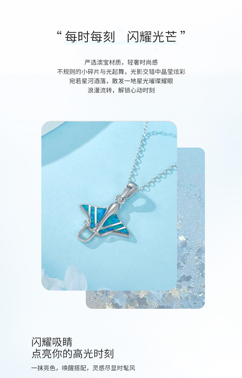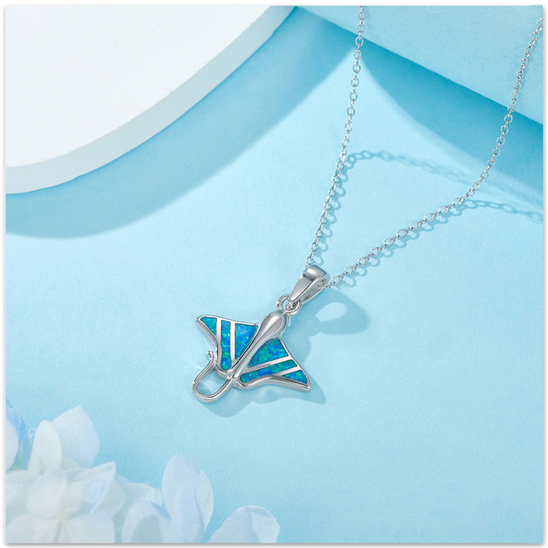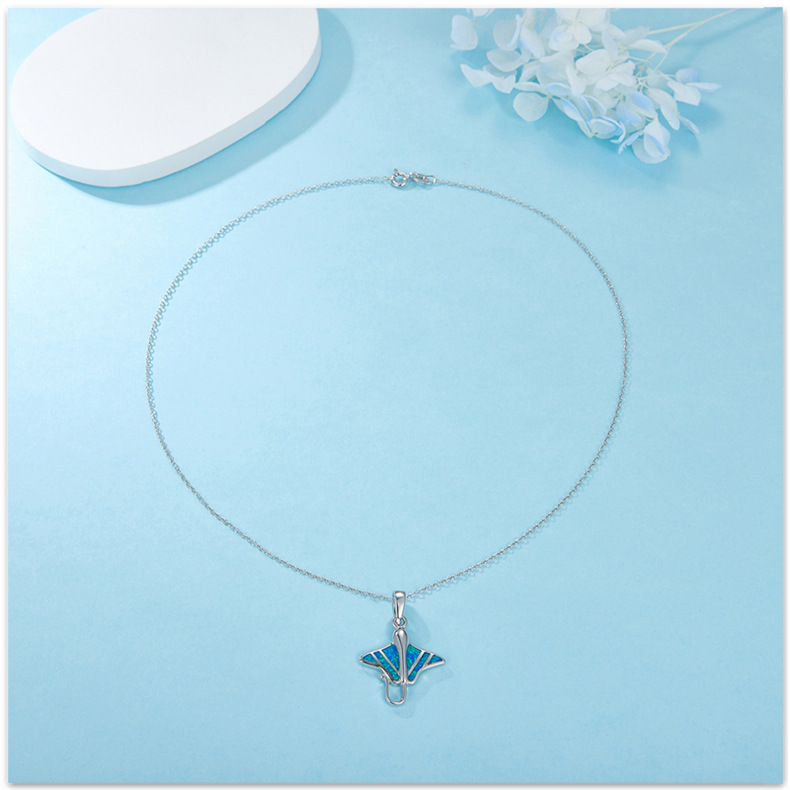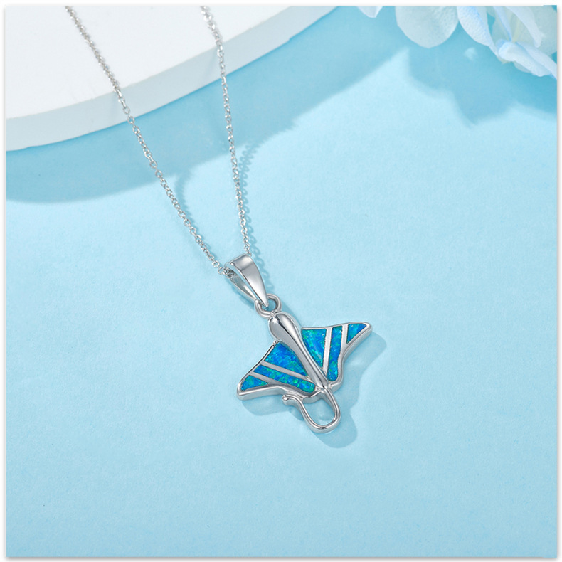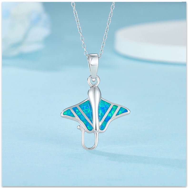 Factory Direct Supply of Hawaiian Blue Opal Six-Blue Fish Tail Pendant, Customizable with Drawings and Samples for Various Necklaces