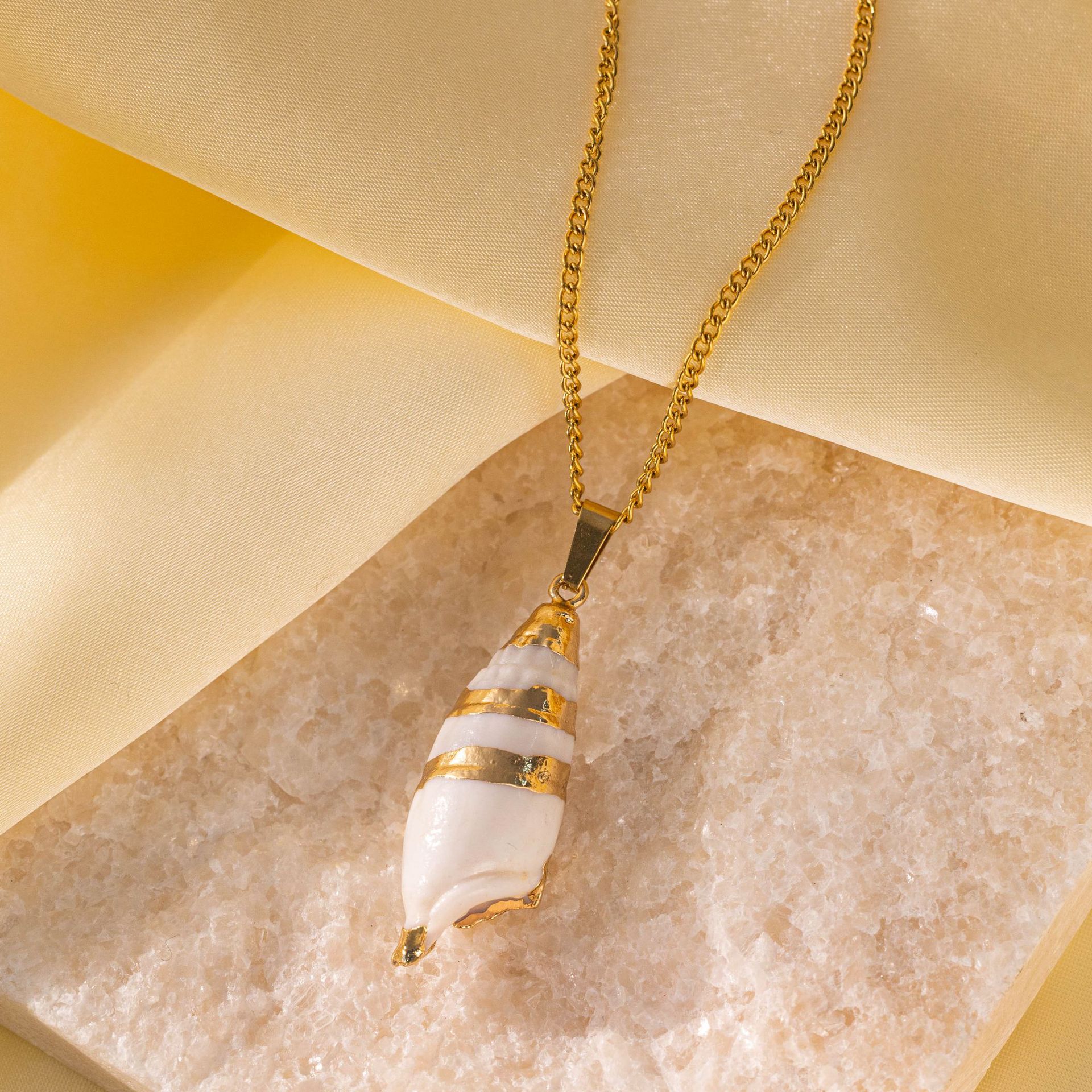 Titanium Steel European and American Cross-border Bohemian Beach Style Personalized Natural Shell Phnom Penh Pendant Men's and Women's Conch Necklace