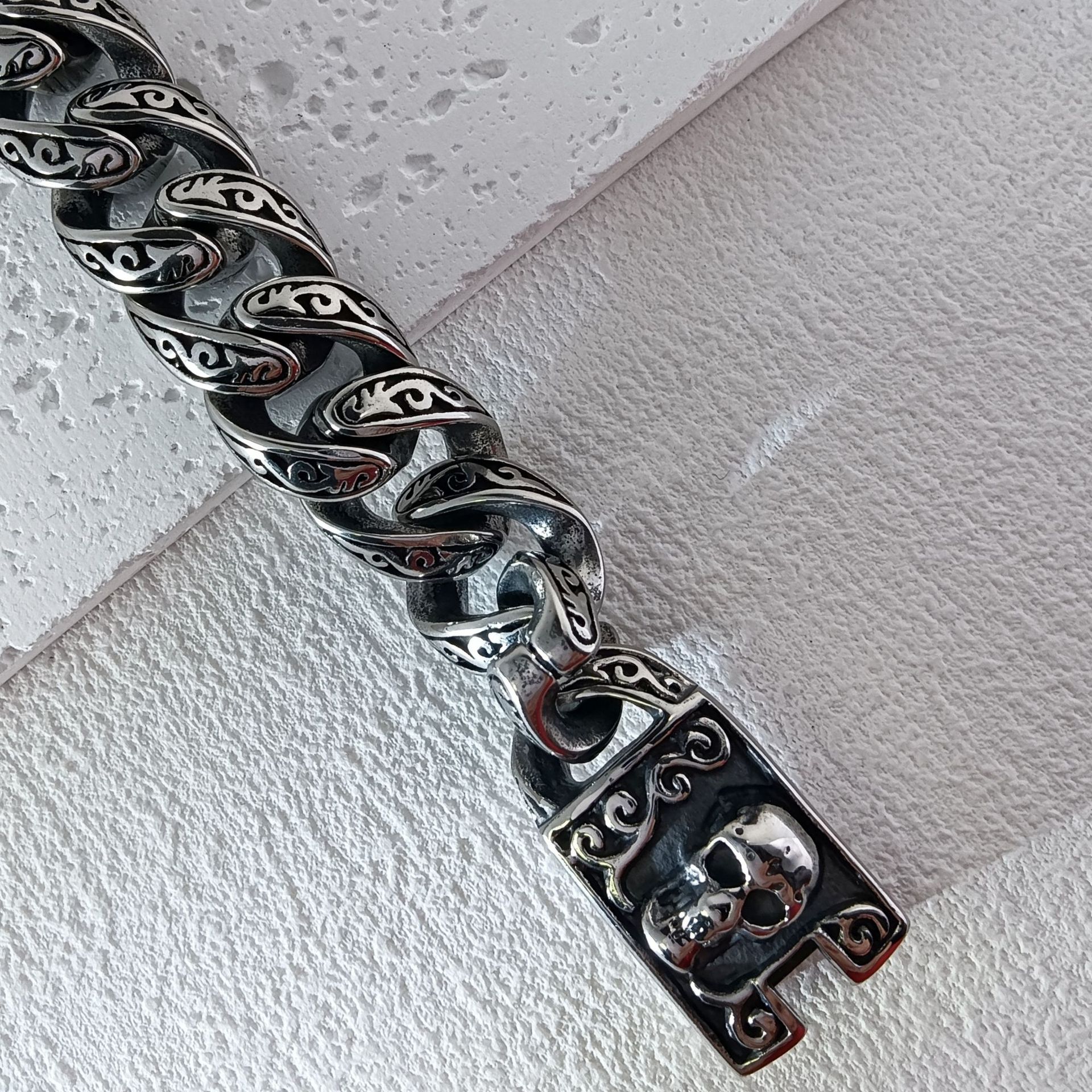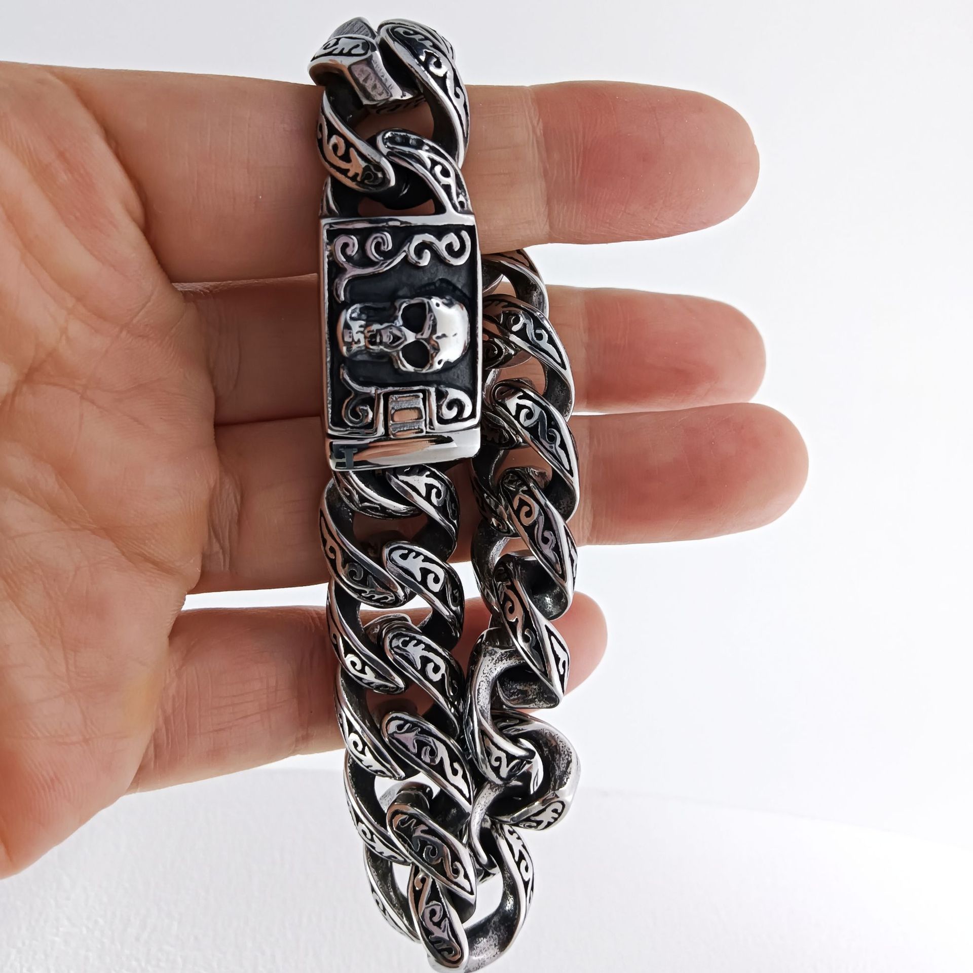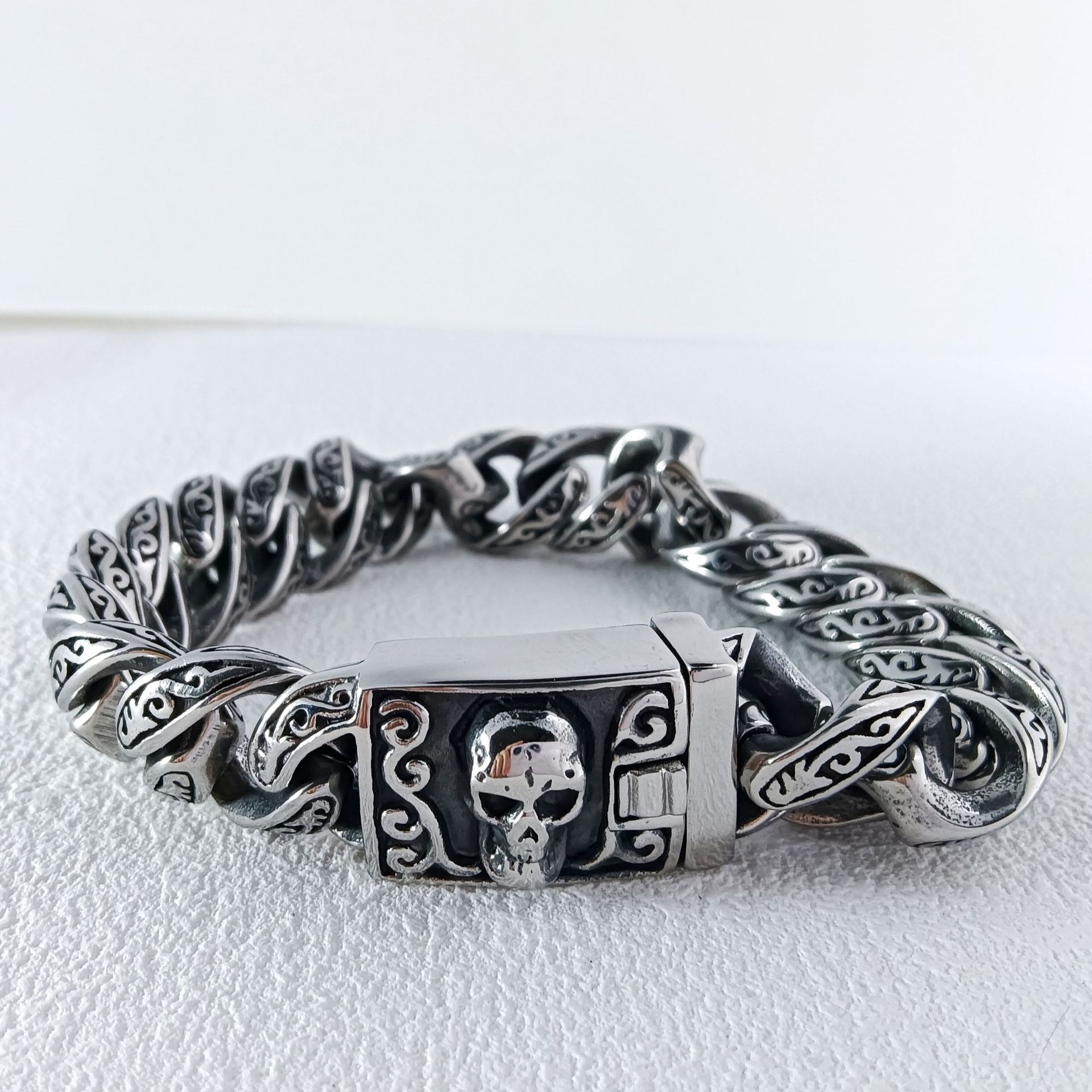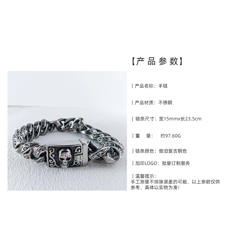 Factory in stock Amazon Vintage Dressed Casting Craft Skull Stainless Steel Bracelet Titanium Steel Hand Jewelry Bracelet