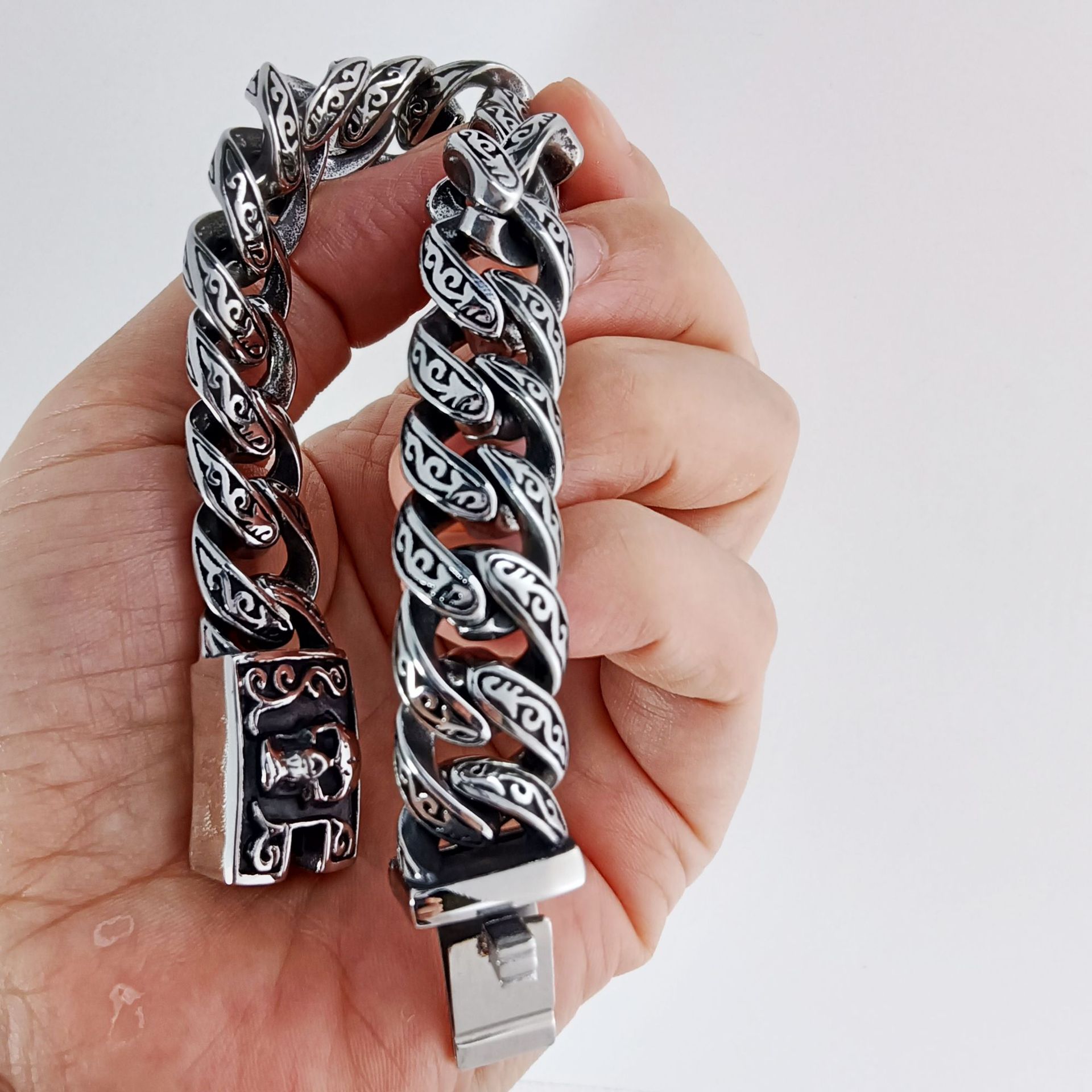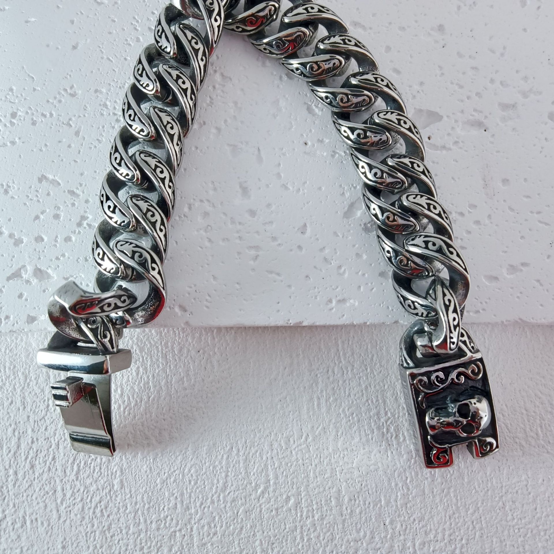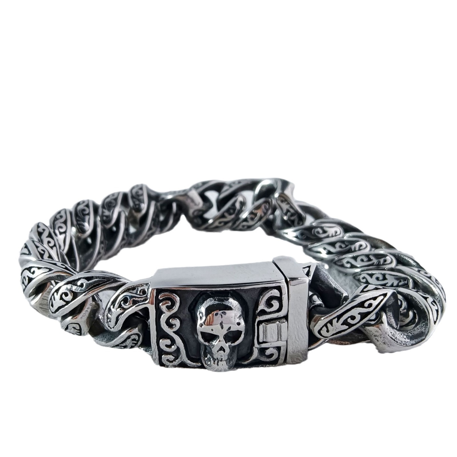 Factory in stock Amazon Vintage Dressed Casting Craft Skull Stainless Steel Bracelet Titanium Steel Hand Jewelry Bracelet