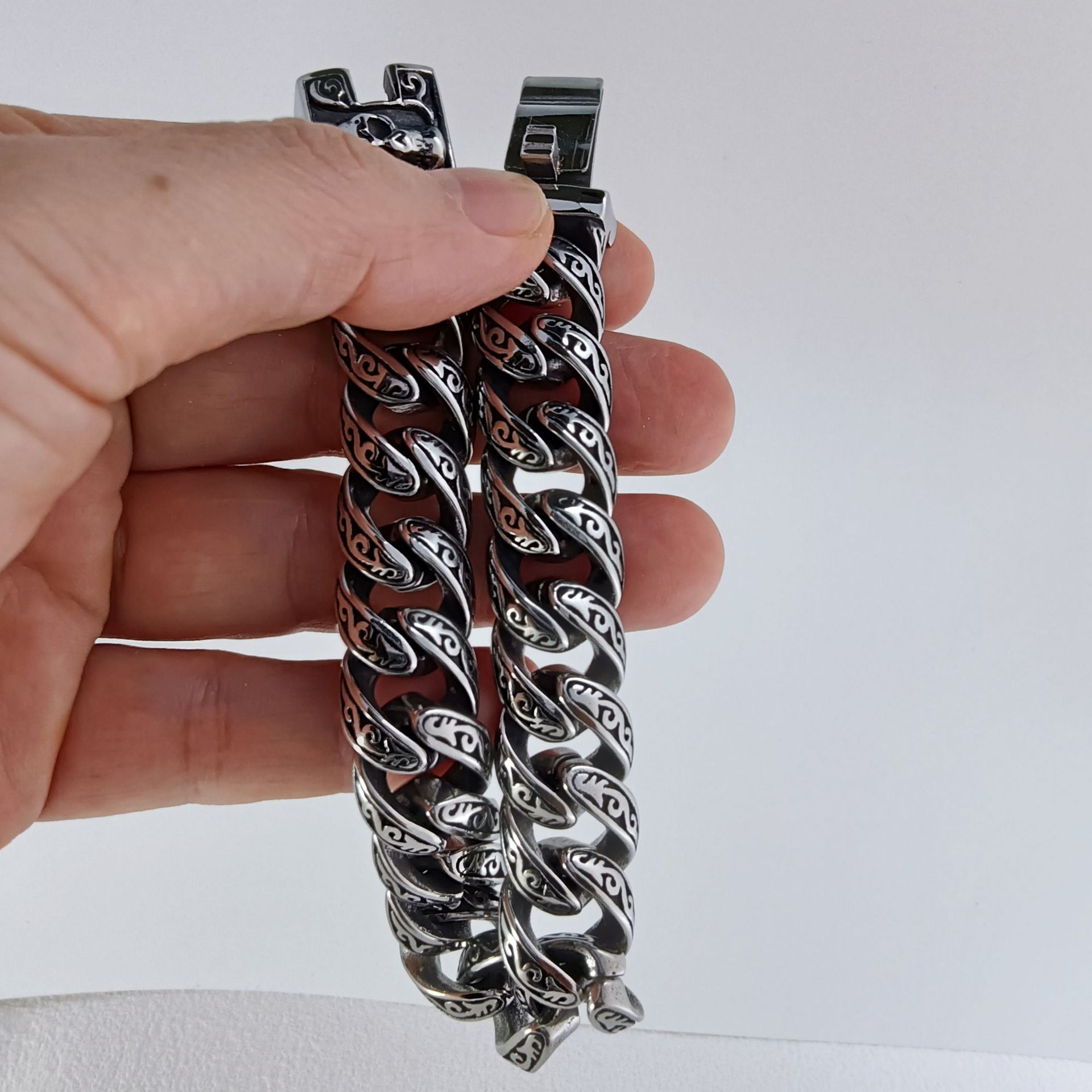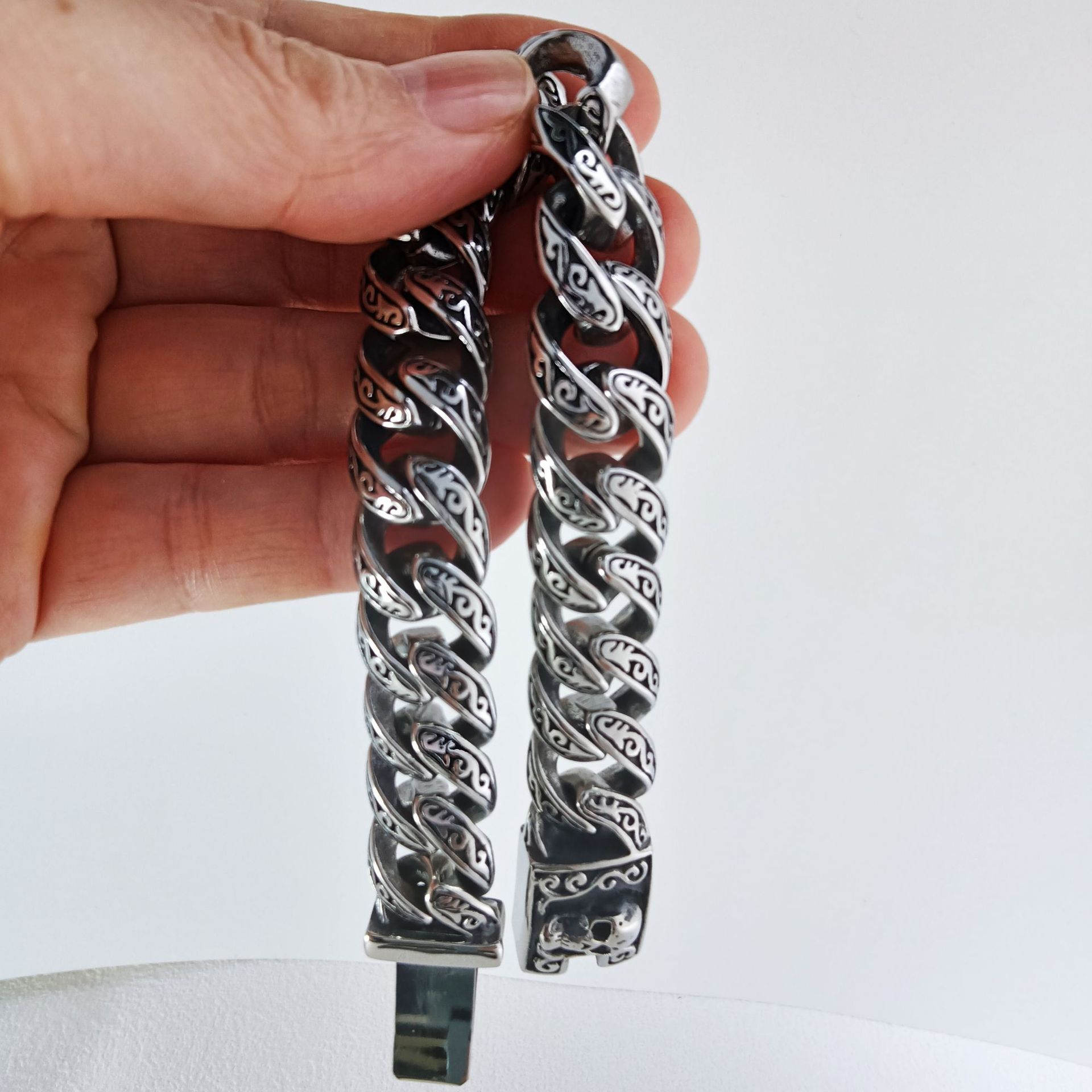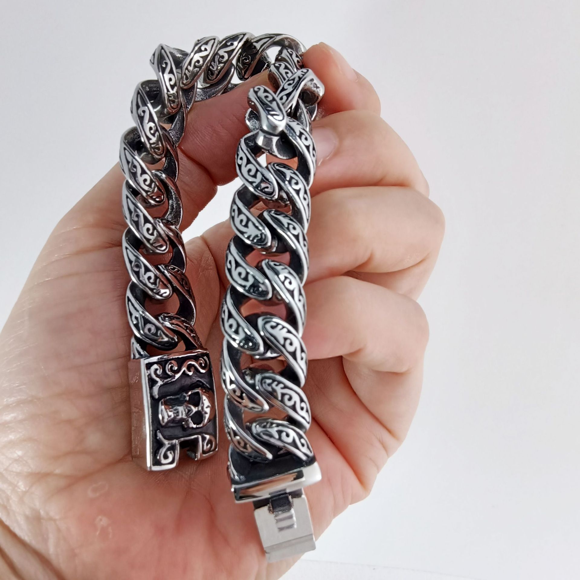 Bracelet: Stainless steel titanium steel stylish retro distressed craft castings and handmade chain combinations, ethnic cultural jewelry