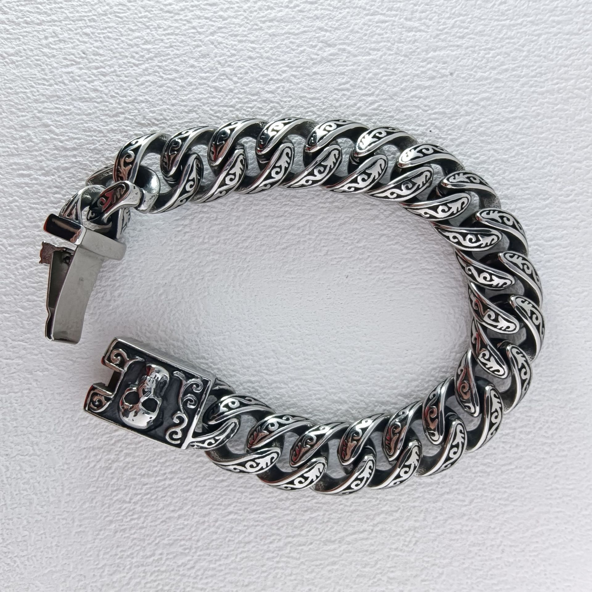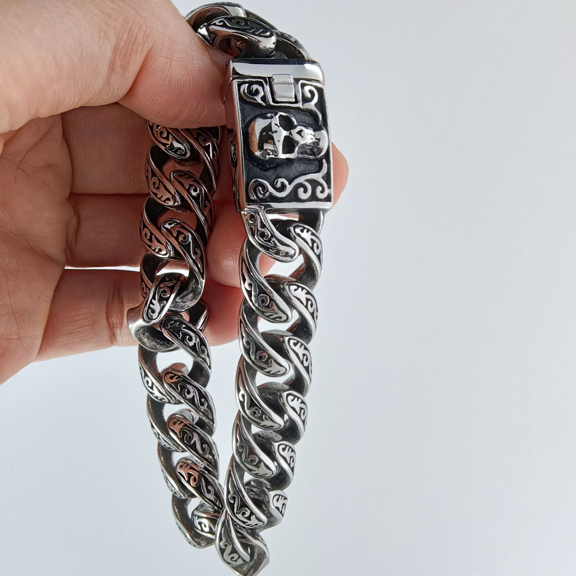 Bracelet: Stainless steel titanium steel personalized distressed craft castings and handmade chain combination, ethnic cultural jewelry