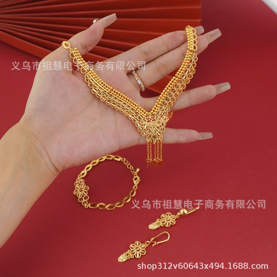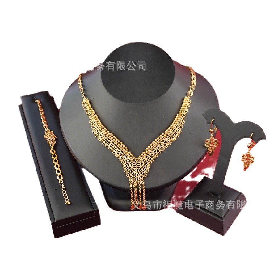 Cross-border Middle East Copper Gold Plated Necklace Earrings Bracelet Bohemian Hip Hop Style Personalized Women Jewelry Accessories