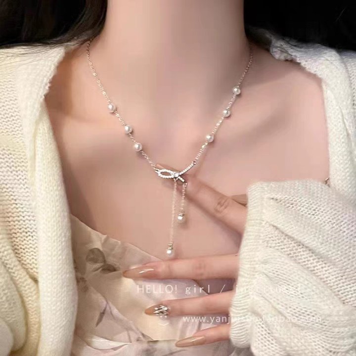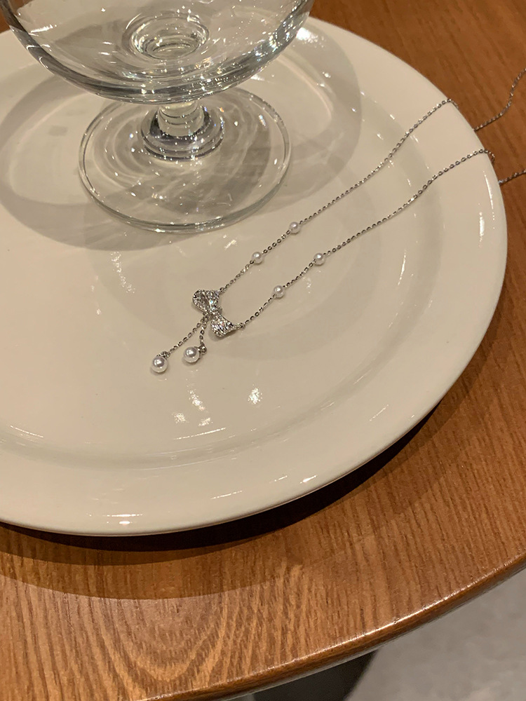 Color: 1#Camellia pearl patchwork ribbon necklace
