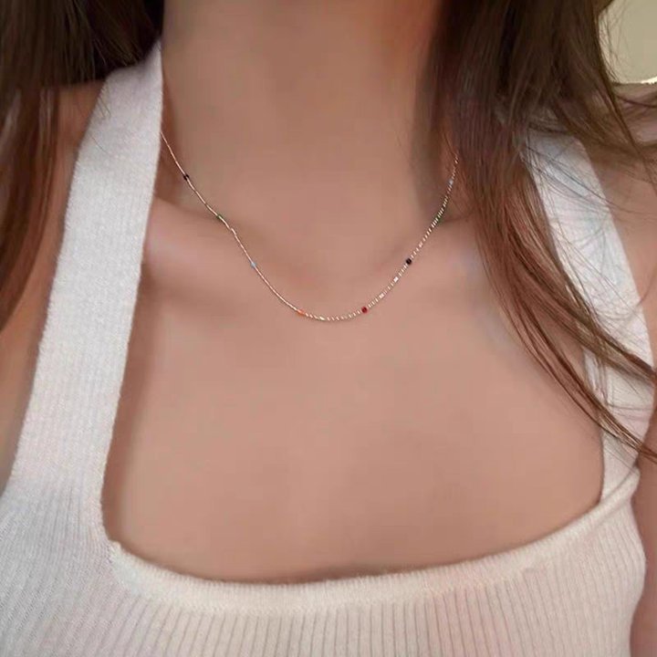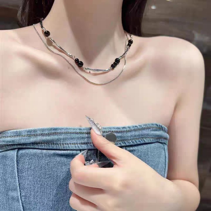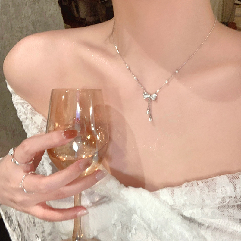 Color: 46#White crystal butterfly double chain collarbone necklace