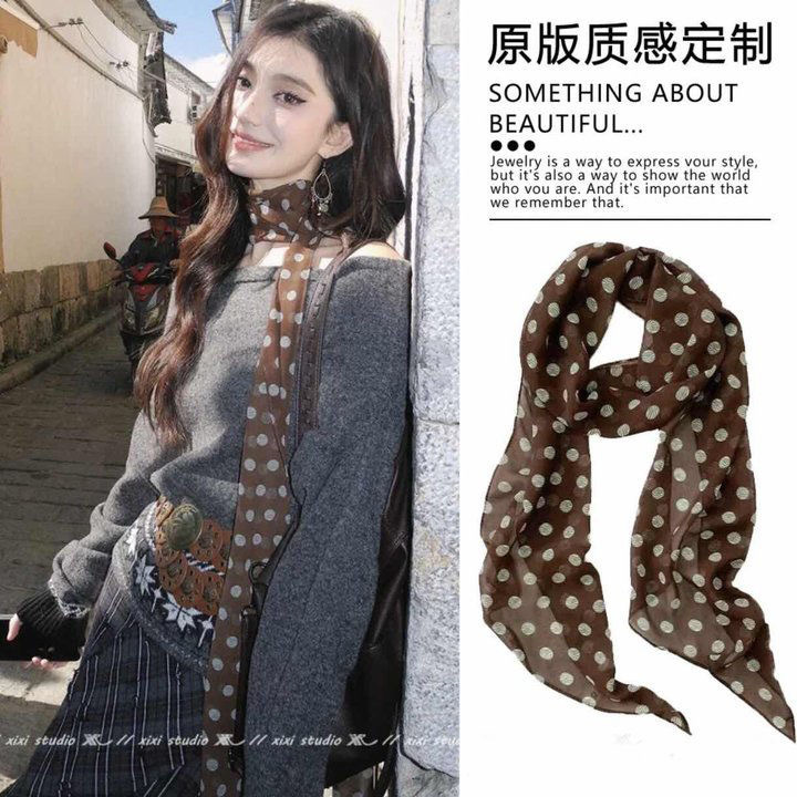 Color: 17#Beige polka dot silk scarf neck strap about 145cm long
