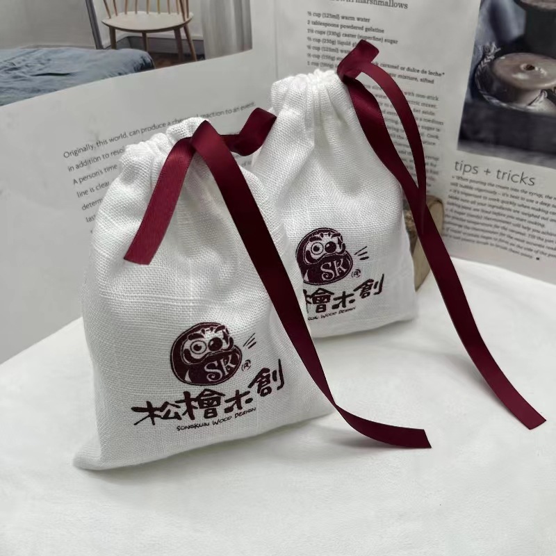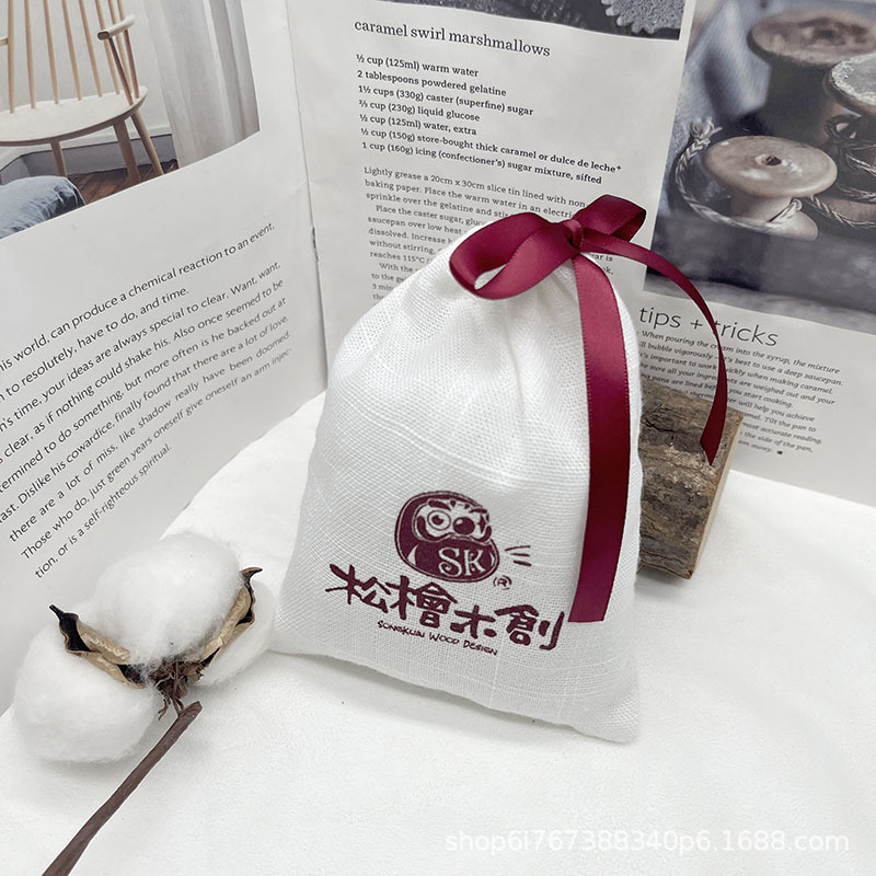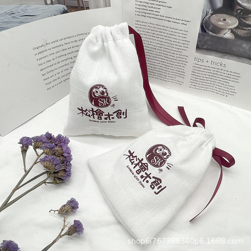 Cotton Slub Linen Bunch Flap Pocket Pants Tea Spice Jewelry Aromatherapy Comb Linen Storage Bag Printable Lo Packaging