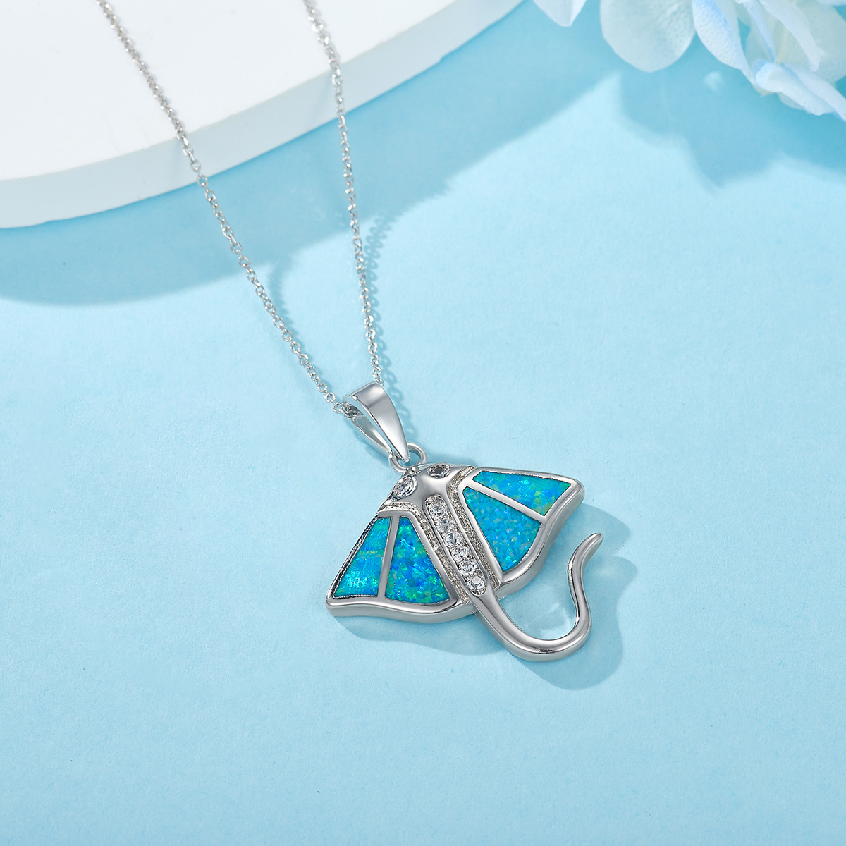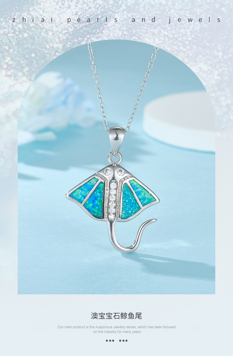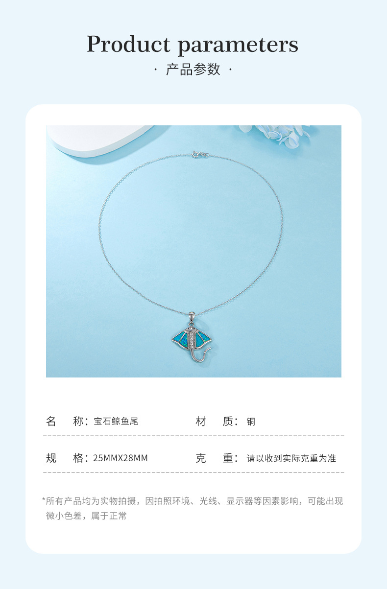 New Hawaiian European and American Jewelry Blue Niche Accessible Luxury Gemstone Whale Tail Pendant Sweater Chain Opal Necklace