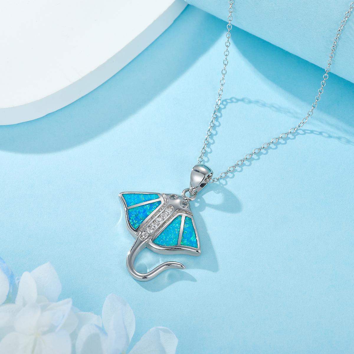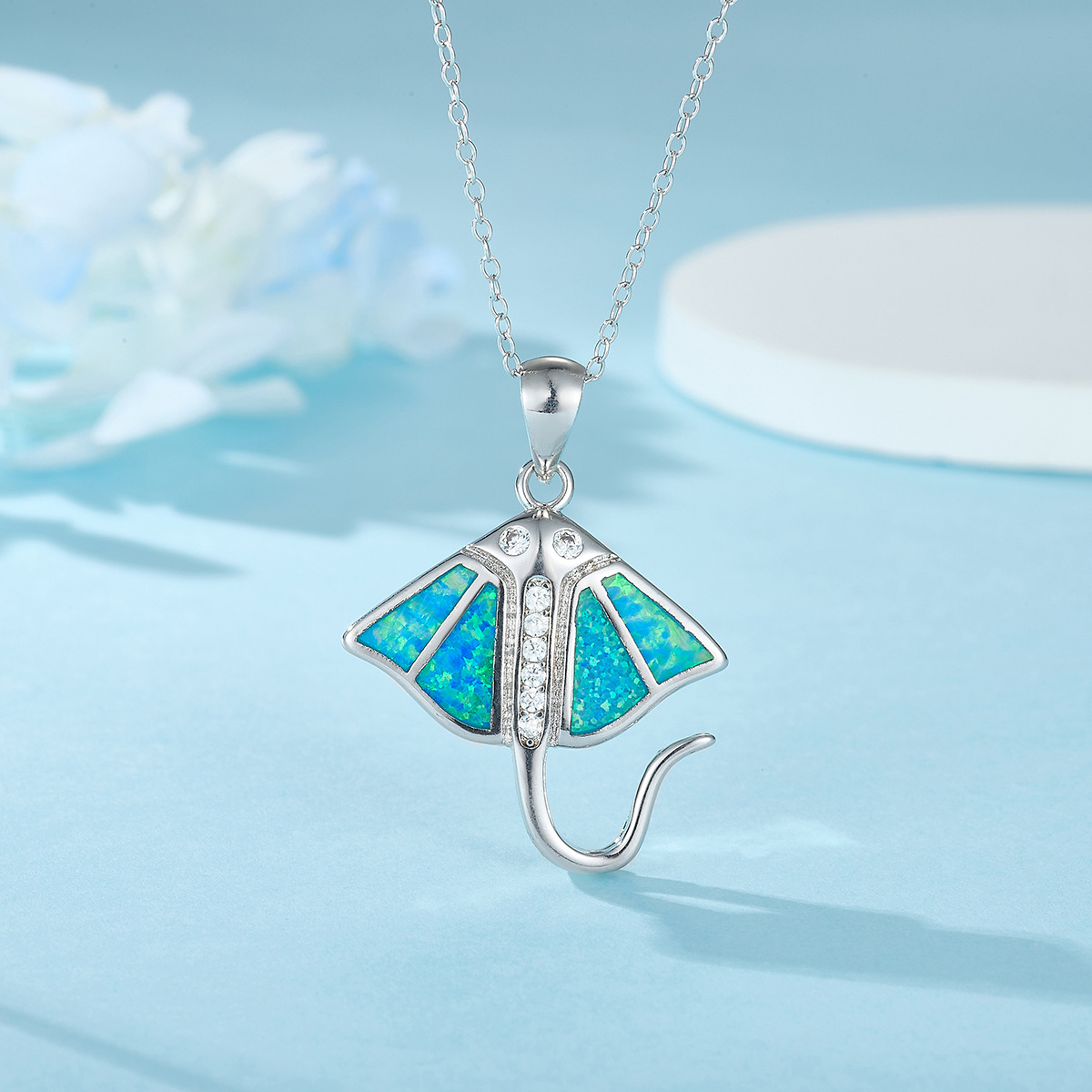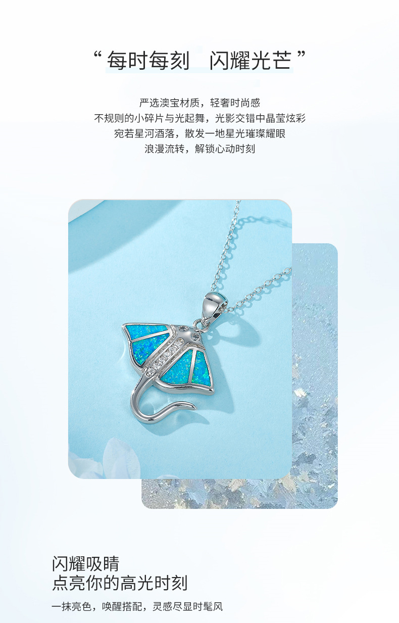 New Hawaiian European and American Jewelry Blue Niche Accessible Luxury Gemstone Whale Tail Pendant Sweater Chain Opal Necklace