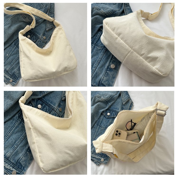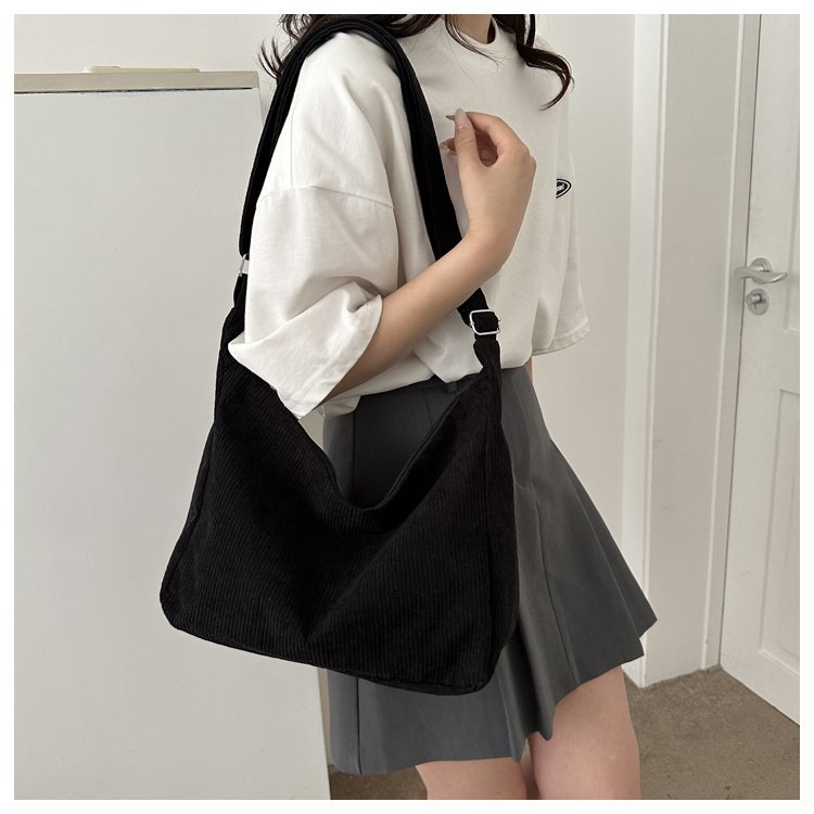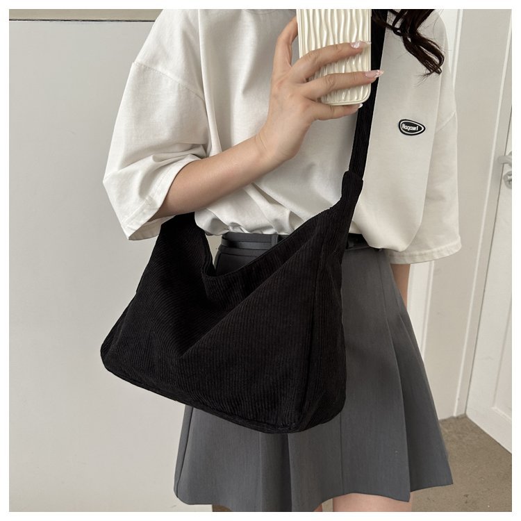 Popular new cross-border corduroy manufacturers wholesale large capacity lazy tote shoulder slung velvet handbag