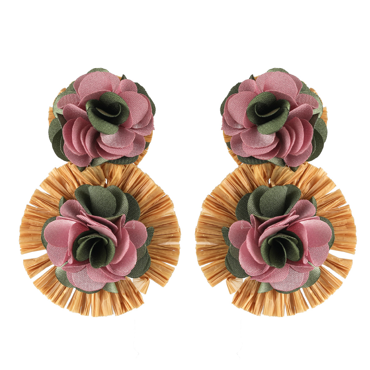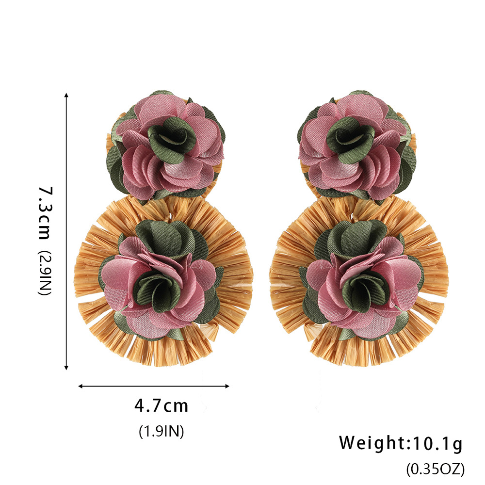 Bohemian Holiday Style Color Rafi Grass Fabric Flower Earrings Beach Style Handmade Sunflower Earrings Earrings
