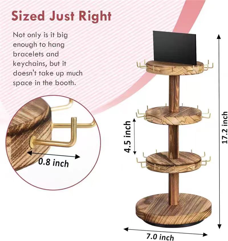 Wooden Rotatable Jewelry Display Rack Wooden Necklace Storage Rack Desktop Multi-purpose Jewelry Storage Rack