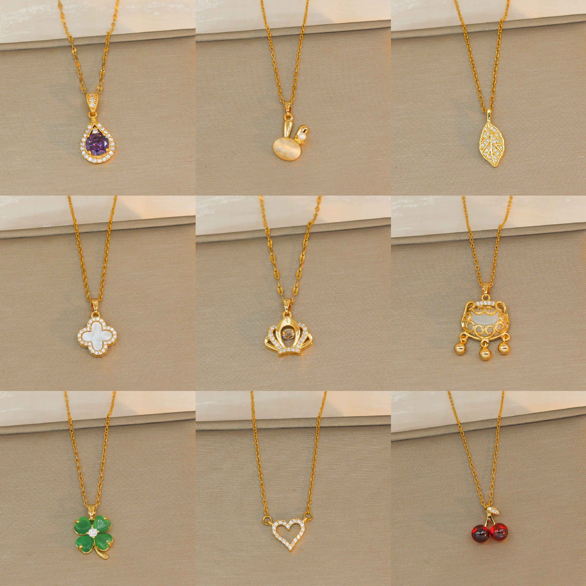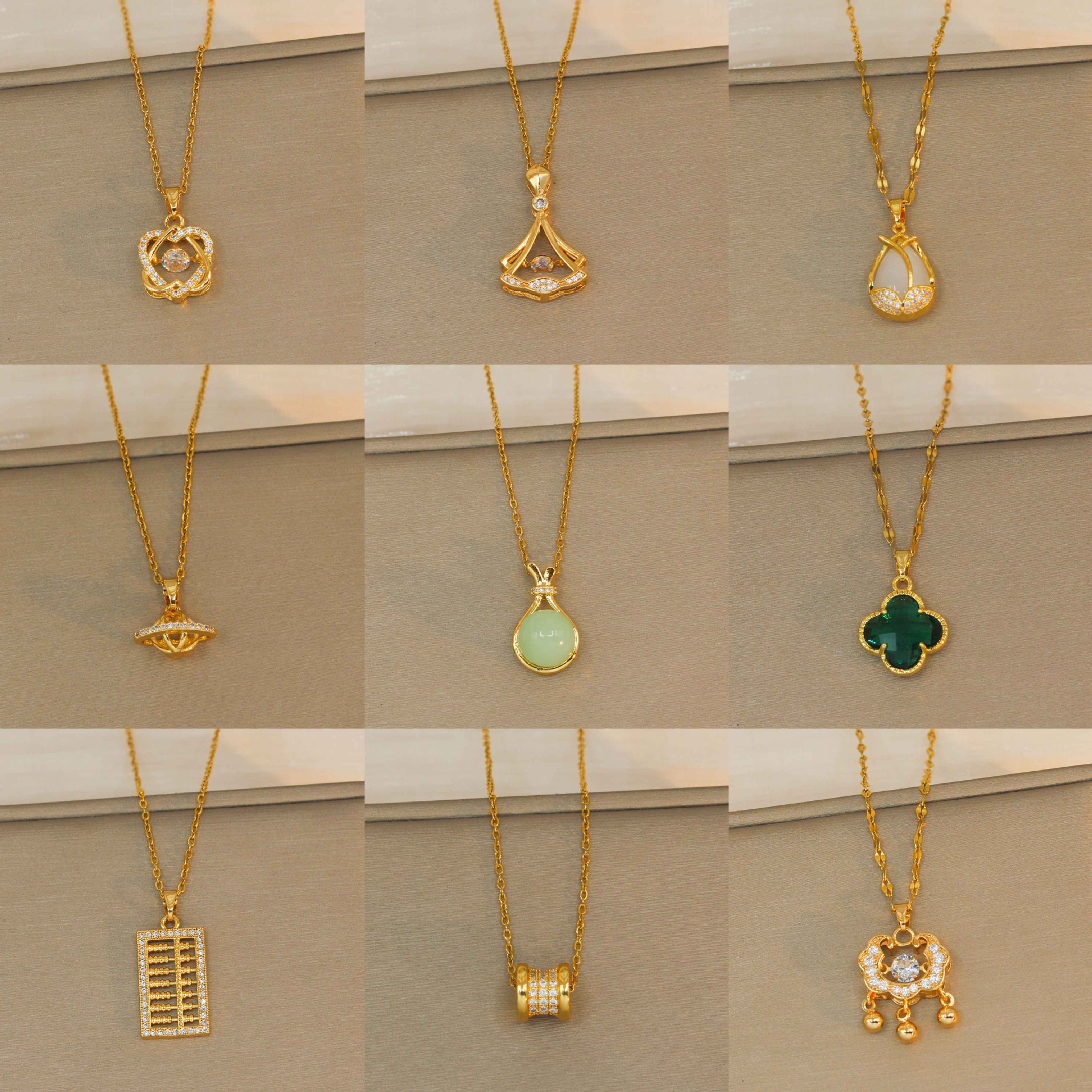 Color: Xl73 green zirconium four-leaf clover necklace gold lip chain