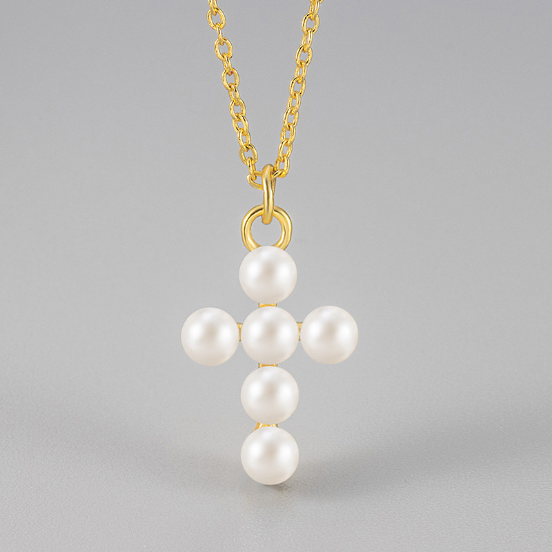color: pearl cross necklace