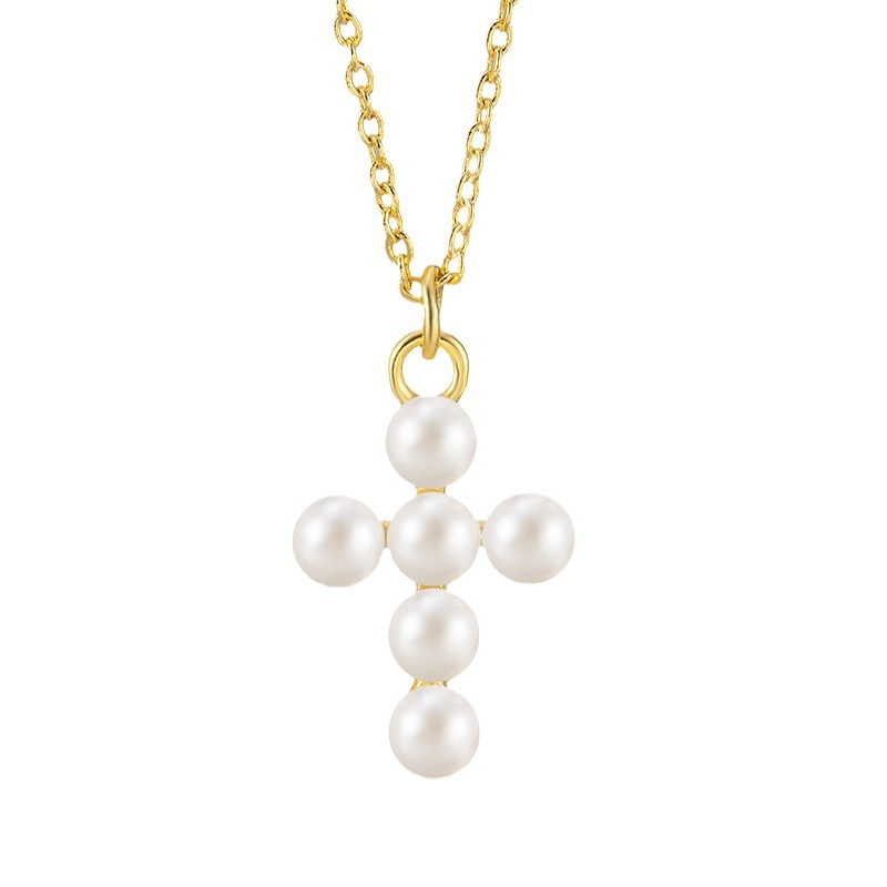 Cross-border Fashion Pearl Cross Necklace Minute Style Girl Temperament Foreign Trade Hot Summer High-grade Clavicle Chain