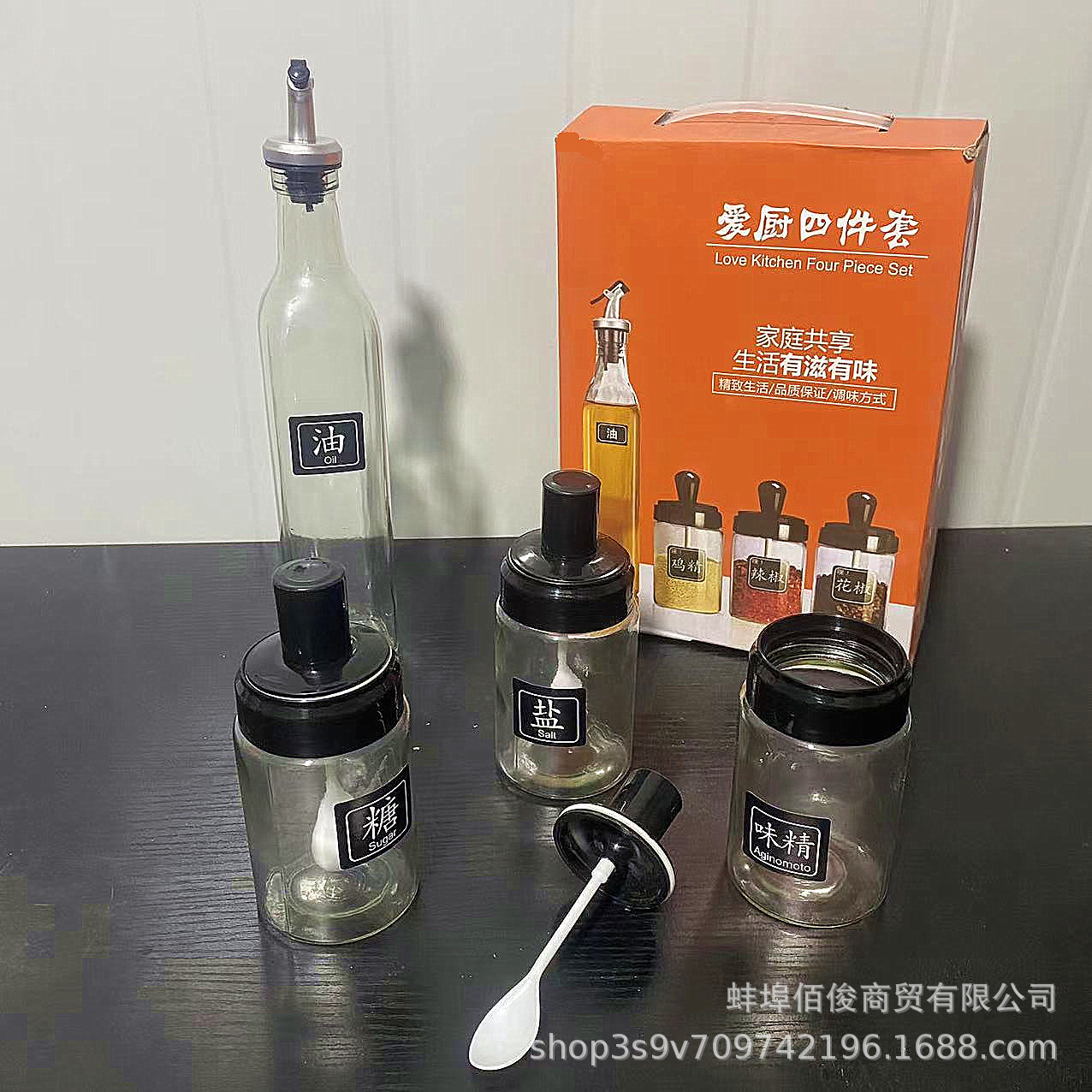 New Kitchen Oil Pot Seasoning Jar Four-piece Set Five-piece Set Spoon Cover One-piece Seasoning Bottle Oil Jewelry Opening Gift