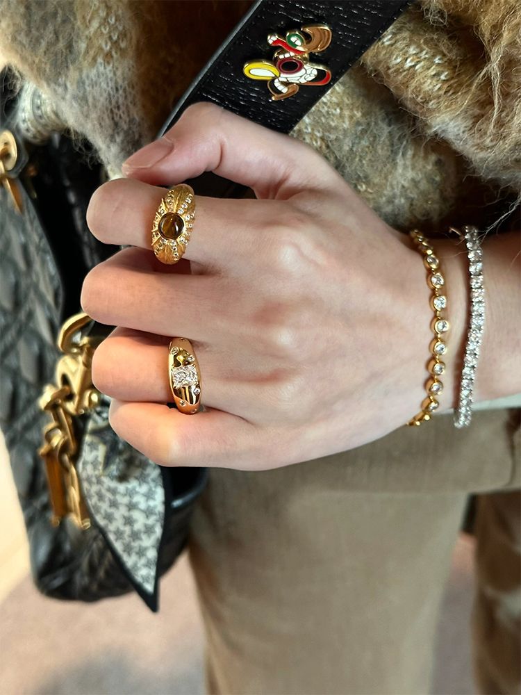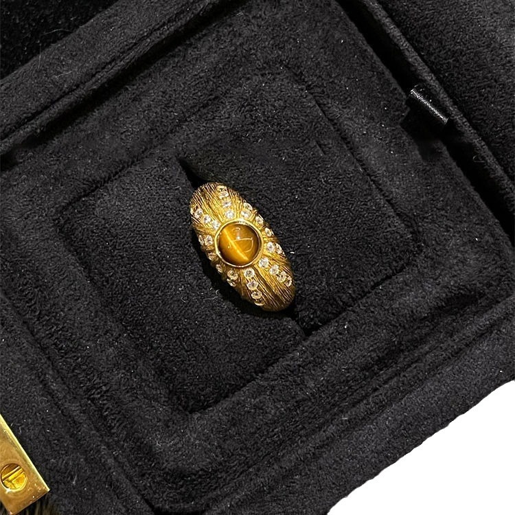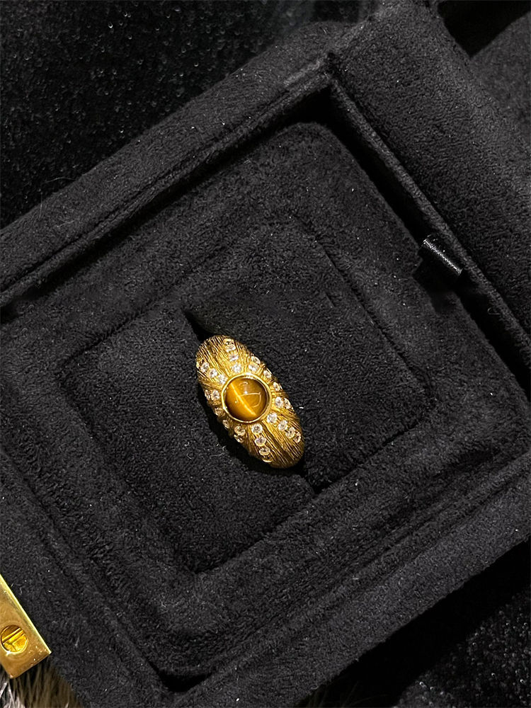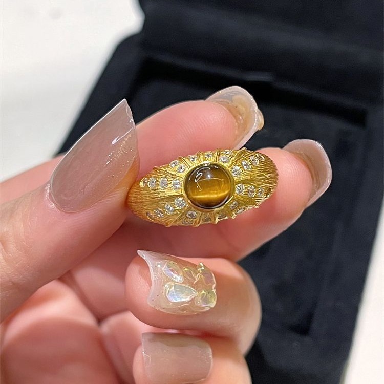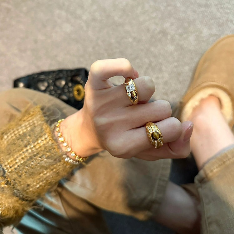 Maillard Tiger Eye Stone Ring Women's vintage Accessible Luxury Niche Design Retro Square Diamond Ring Index Finger Ring Trendy