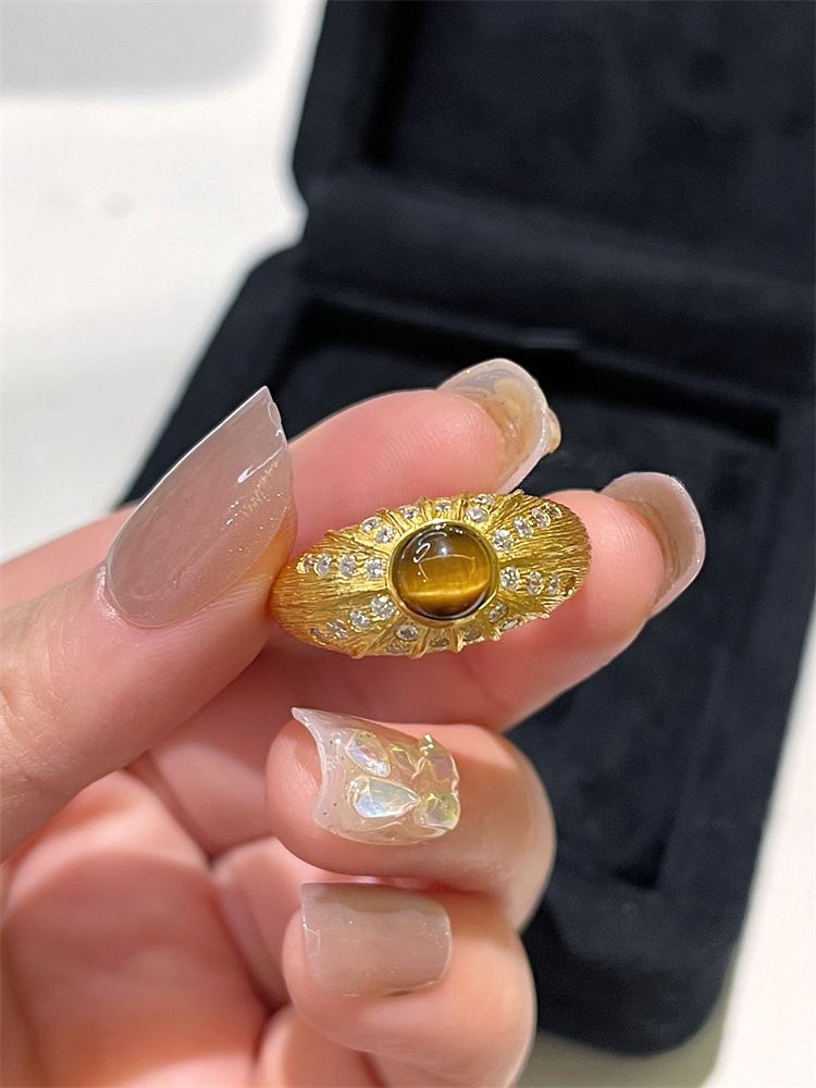 Color: Tiger eye ring gold color