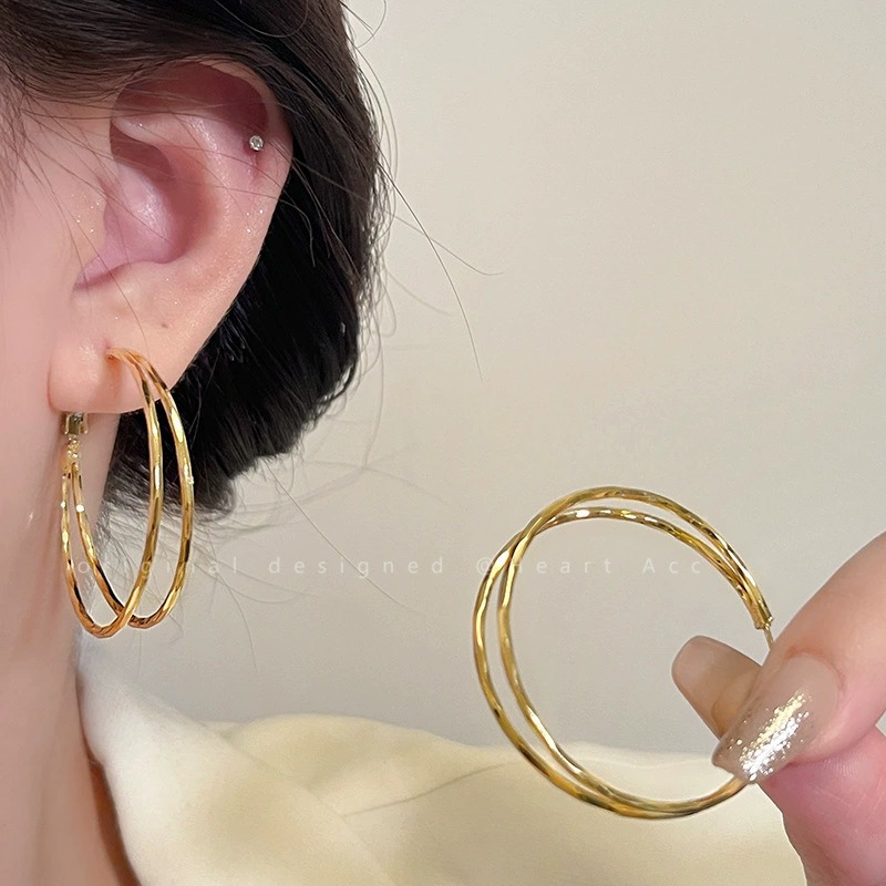 Fashion Exaggerated Circle Earrings Women's Light Luxury High-end Sense Suitable for Big Face Ear Ring Elegant Ring New Style Piece Ring Earrings