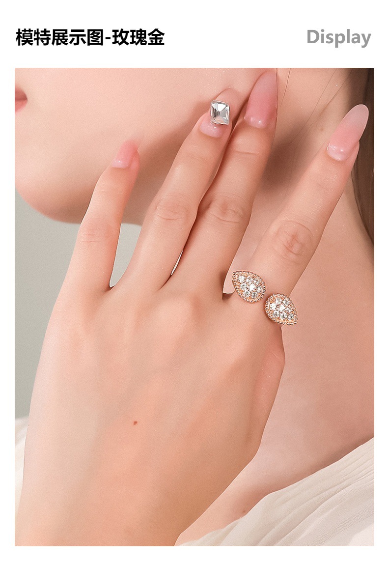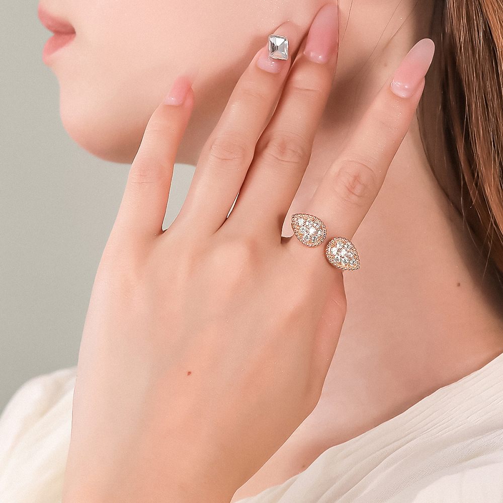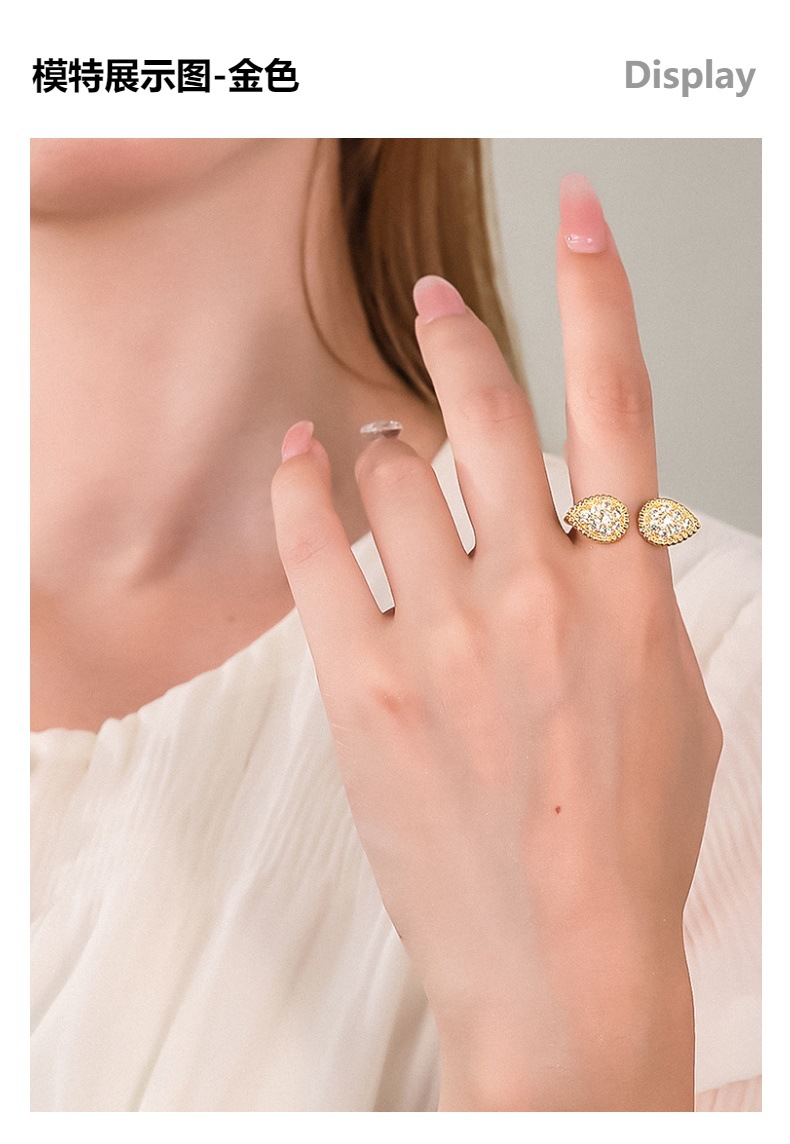 European and American Water Drop-Shaped Adjustable Vintage Ring for Women, Elegant and Luxurious 5A Zircon Ring with Diamond Inlay Jewelry