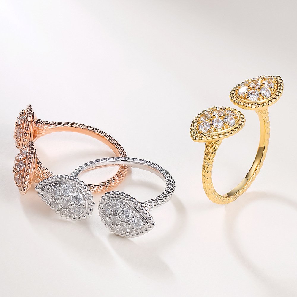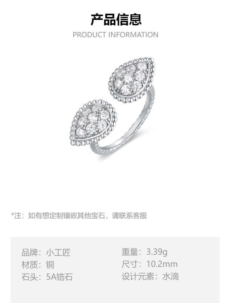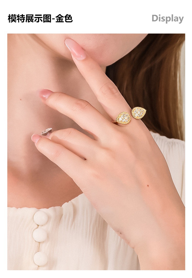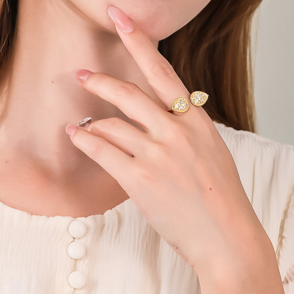 European and American Water Drop-Shaped Adjustable Vintage Ring for Women, Elegant and Luxurious 5A Zircon Ring with Diamond Inlay Jewelry