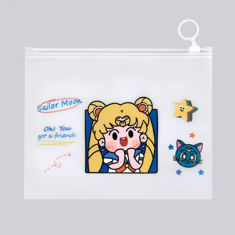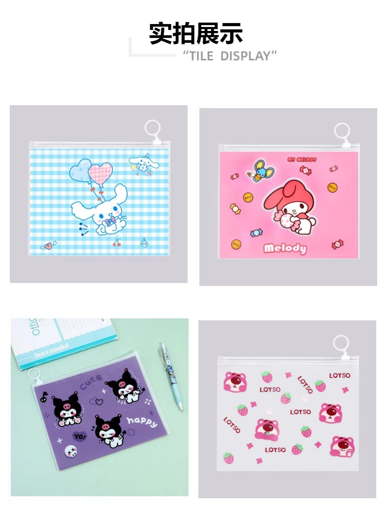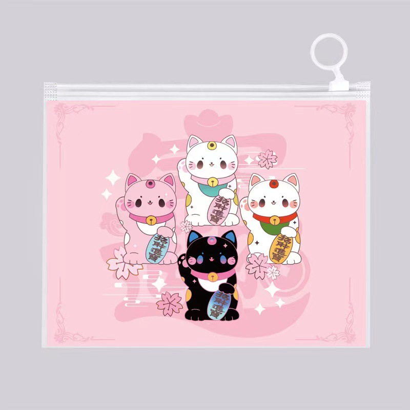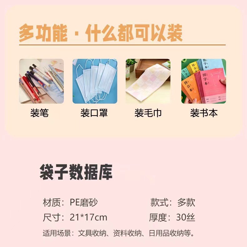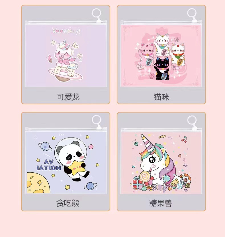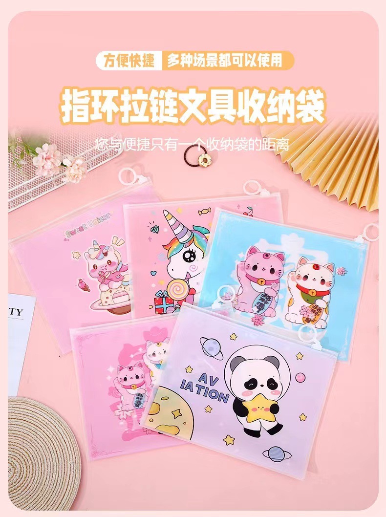 PE frosted pen bag self-sealing zipper cartoon stationery storage finger ring zipper bag multi-purpose packaging wholesale
