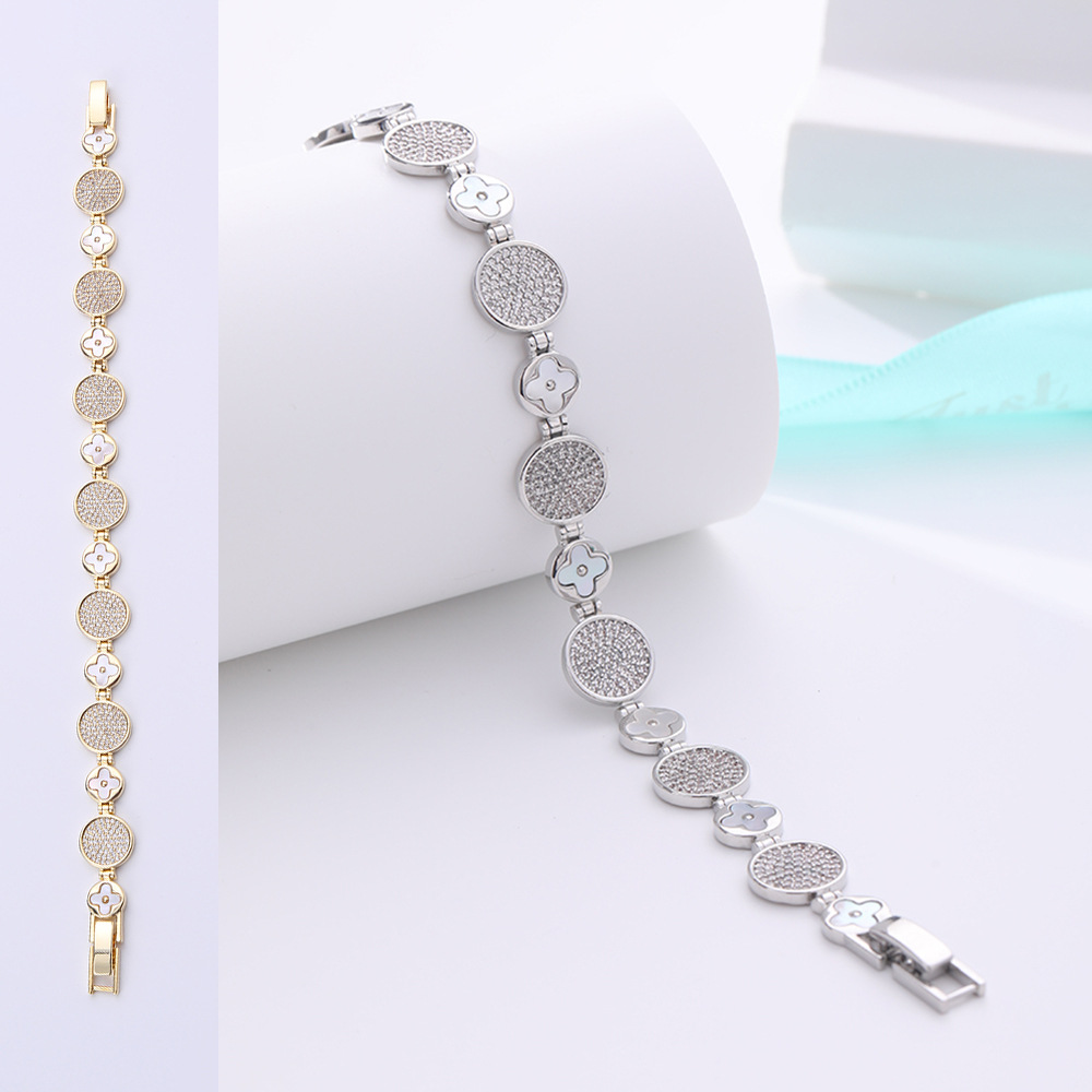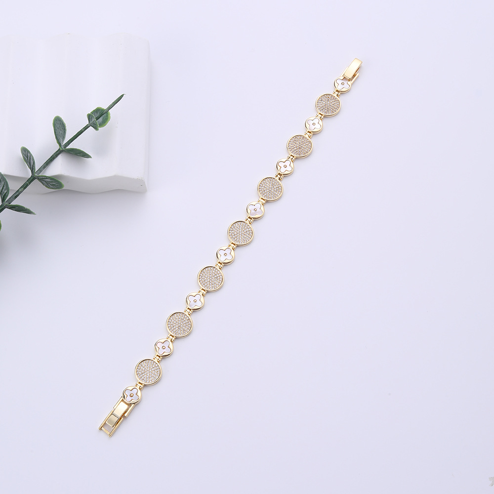 Item number: Micropaved zircon large round cake four-leaf clover bracelet