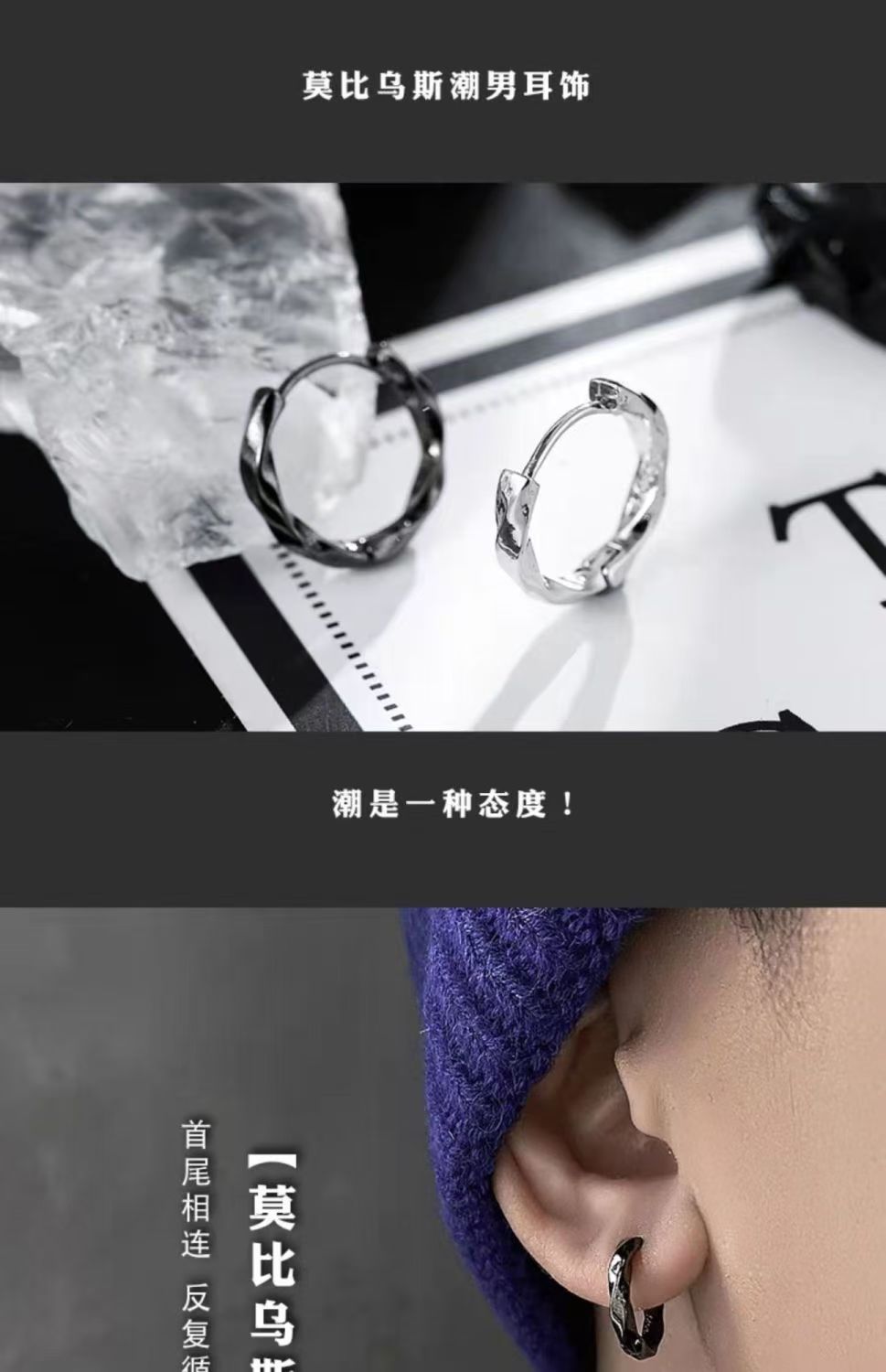 Mingjie Mobius Earrings Men's Handsome High-end Men's Earrings Trendy Personalized Men's Single Ring Ear