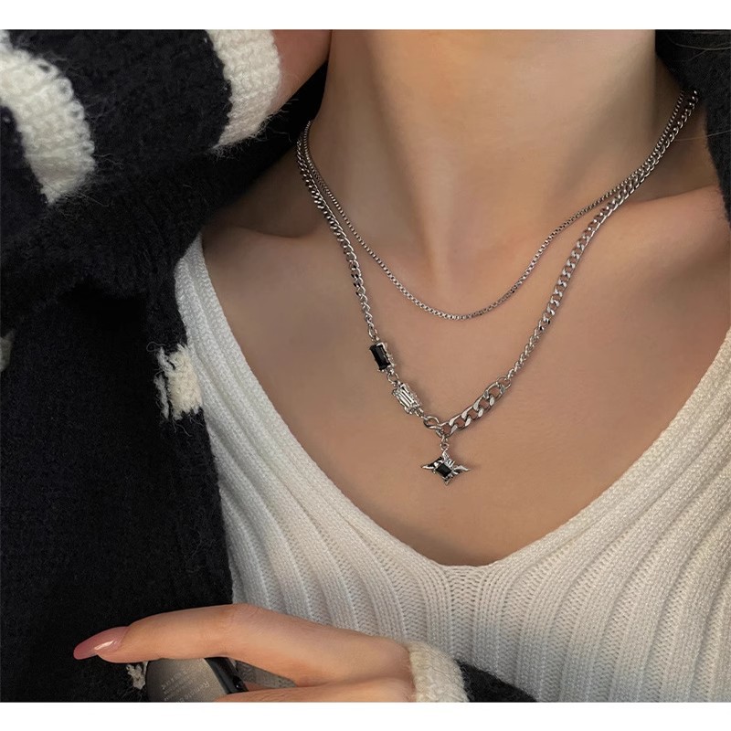 Star Double-layer Necklace Men's Trendy Sweater Chain Accessible Luxury Niche Design Hip-hop Style Couple Boys and Girls Clavicle Chain