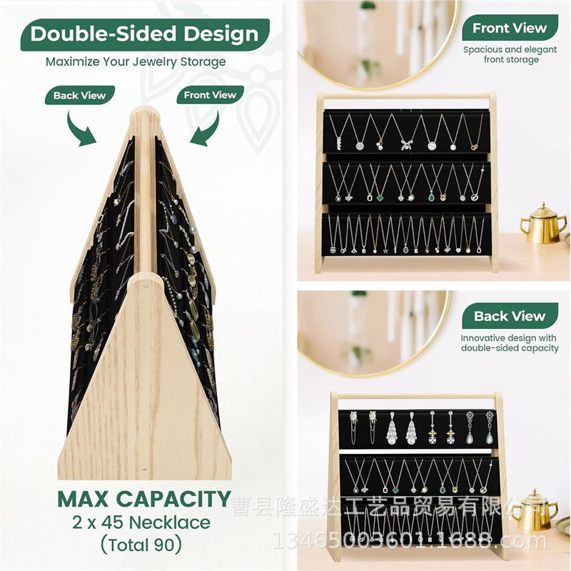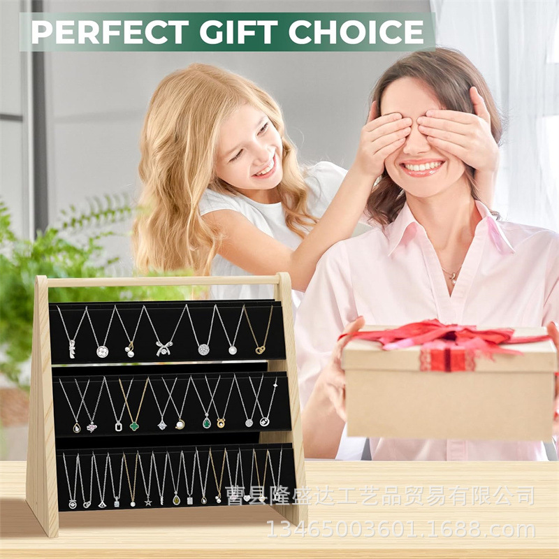 Wooden Necklace Rack Desktop Pendant Display Rack Three-layer Jewelry Bracelet Store Display Rack Solid Wood Jewelry Rack