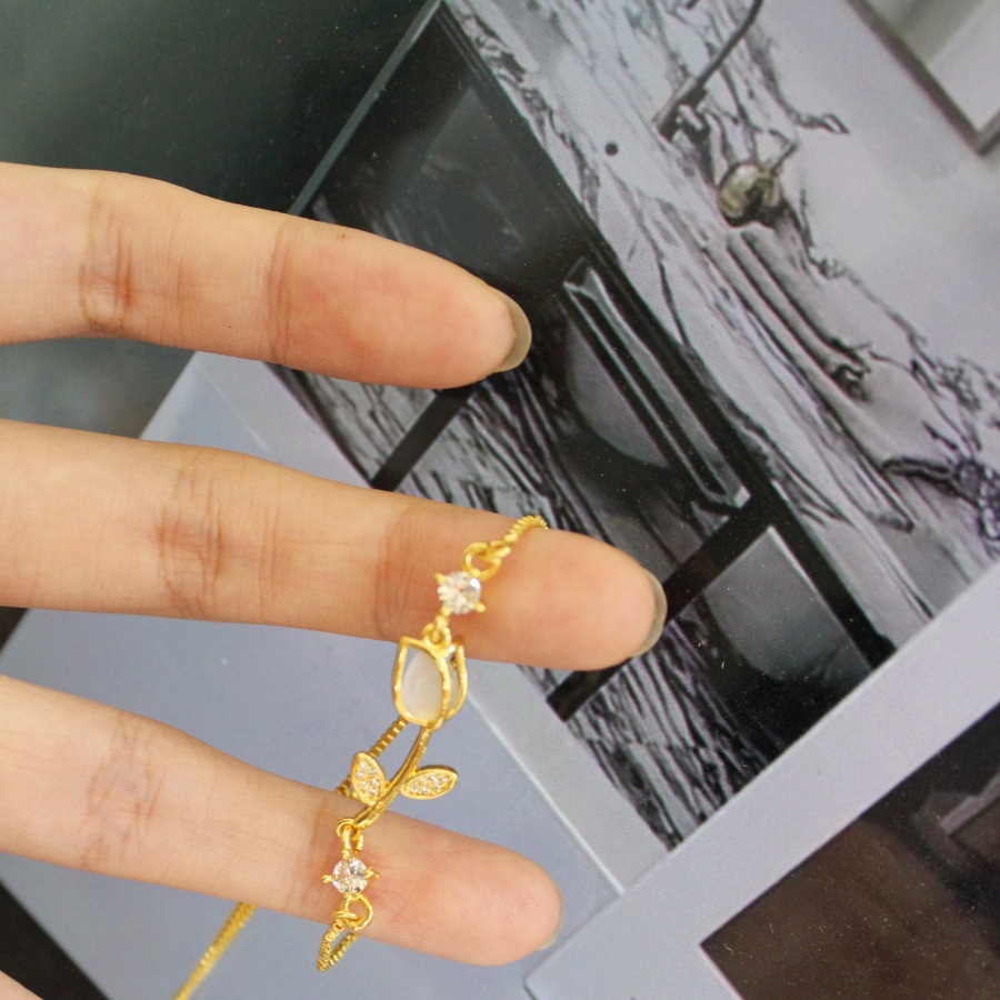 Cross-border tulip rose bracelet women's fashion niche design flower opal gift pure copper factory direct sale