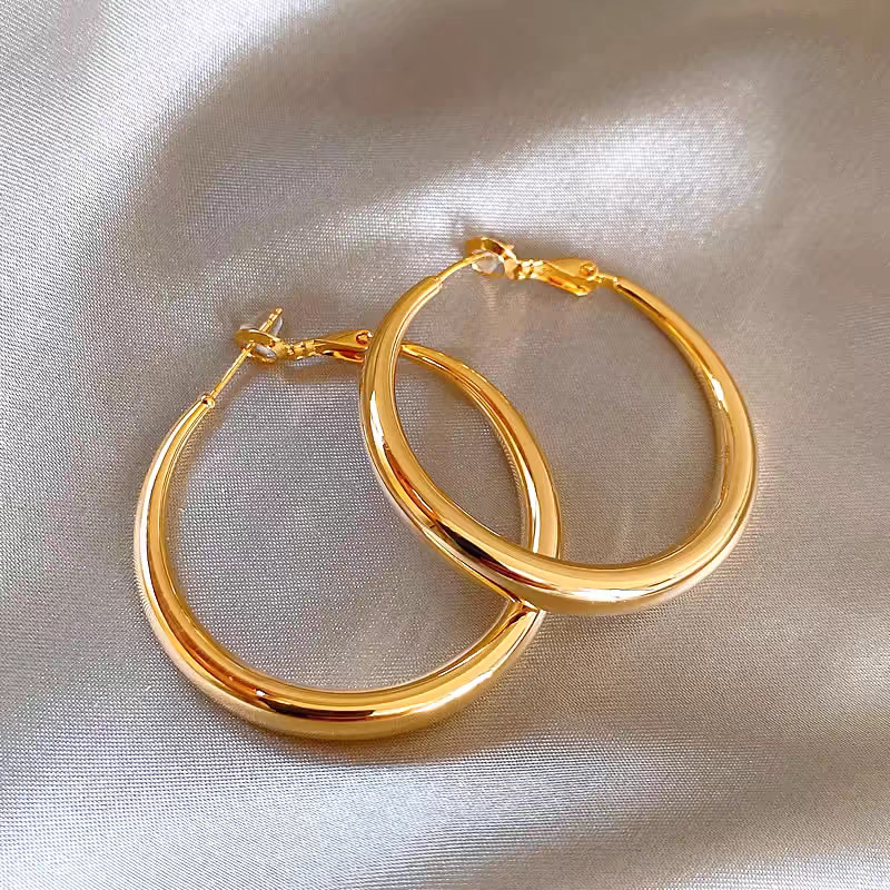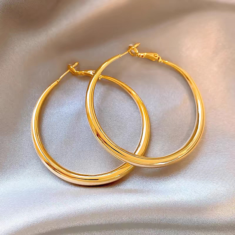 Golden big earring earrings women's light luxury high-end temperament 2024 new explosions unique exaggerated plain ring earrings