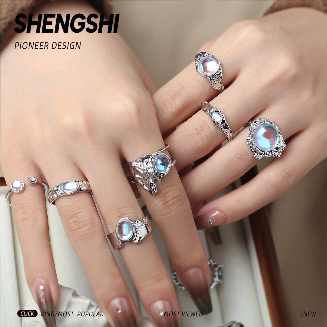 Moonstone ring for women niche high quality: Moonstone ring for women niche high-end accessible luxury