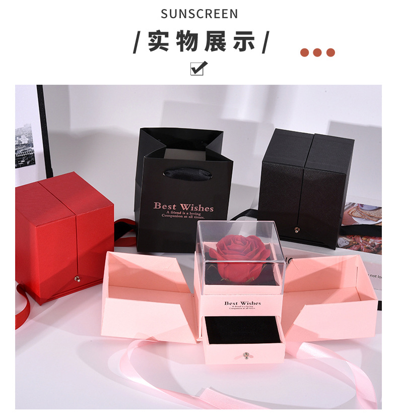 Specification model: Pink; double-door gift box + flowers + gift bag + necklace lining (send greeting card)